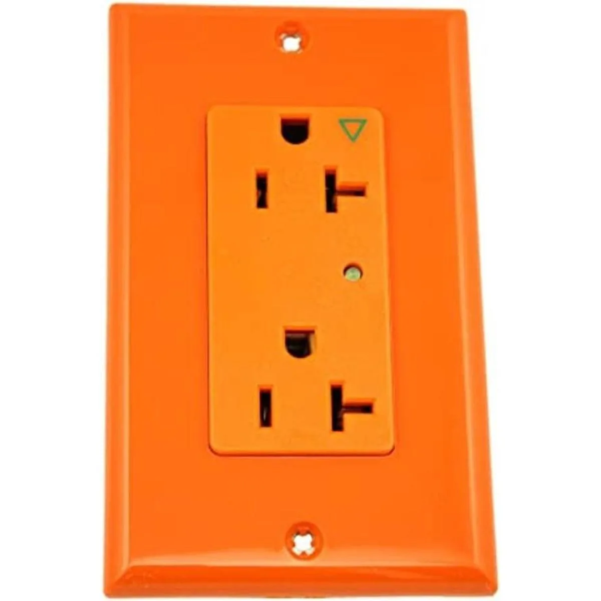 Leviton 5380IGO Receptáculo para supresor de sobretensiones dúplex Decora Plus, hoja recta, grado industrial, suelo aislado, sobretensiones con luz indicadora, color naranja