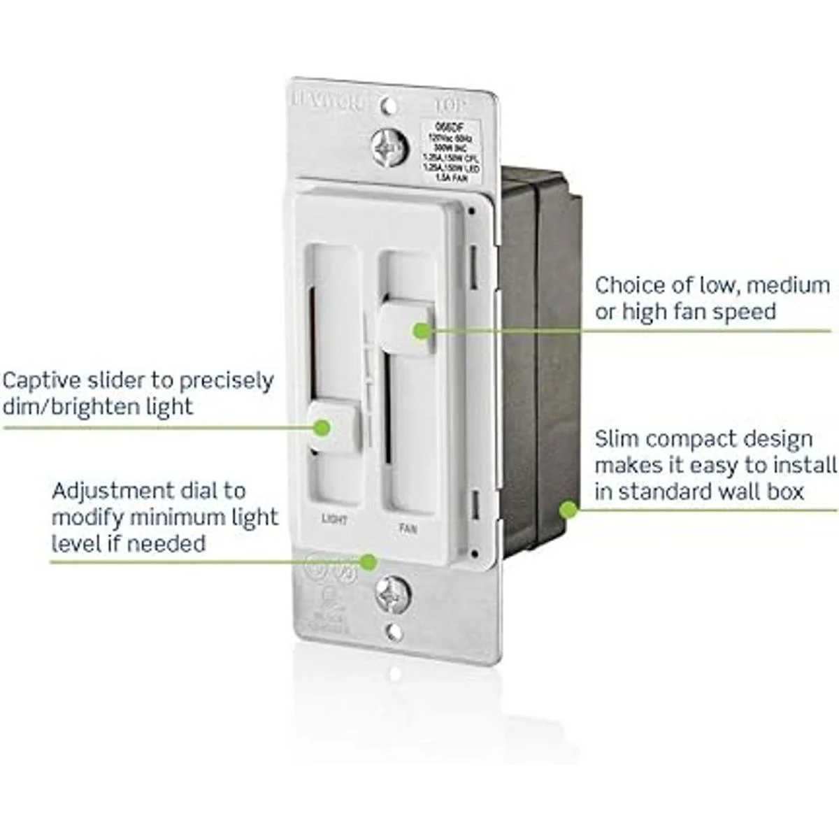 Conveniente: diseñado para trabajar con ventiladores de techo con luces. Controles deslizantes separados para la velocidad del ventilador y el atenuador