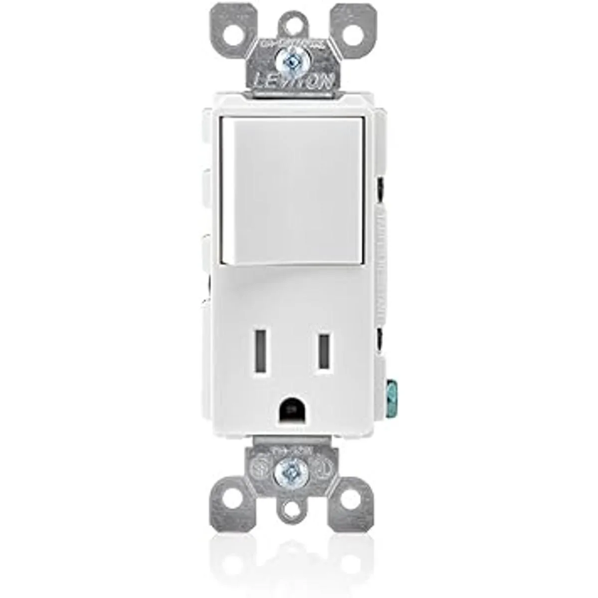 Leviton interruptor resistente con combinación de botón y enchufe NEMA, T5625W