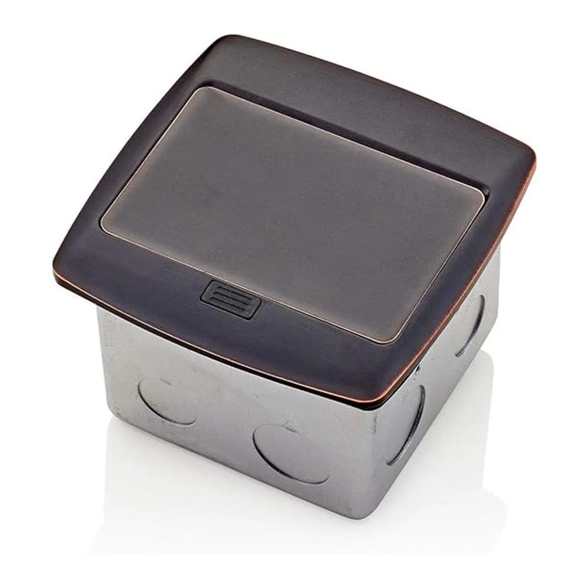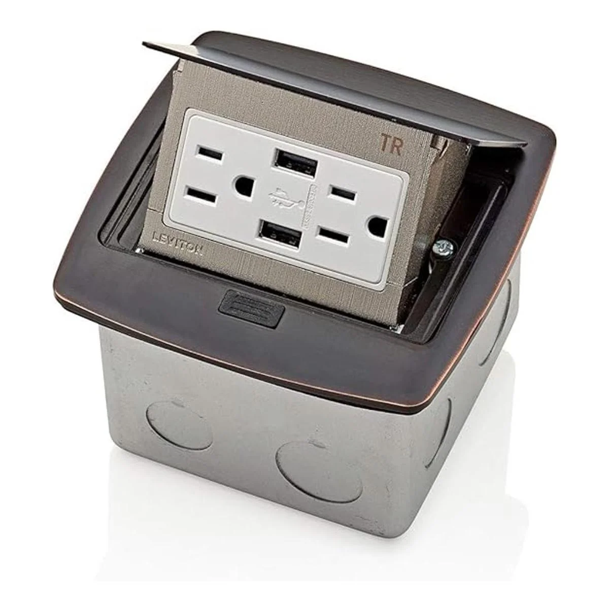 Leviton PFUS1BZ Caja de piso desplegable con cargador dual tipo A, 3.6 USB, toma de corriente de 15 amperios, bronce