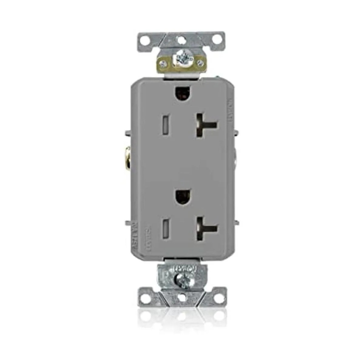 Leviton TDR20GY 20 Amp, 125 Voltios, Resistente a la manipulación, Receptáculo Duplex Decora Plus, Hoja Recta, Grado Comercial, Autopuesta a tierra, Gris