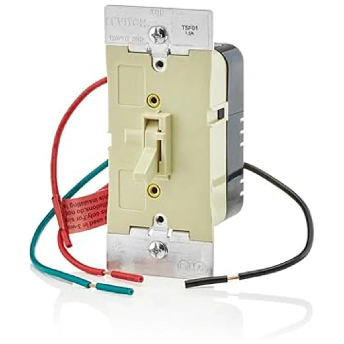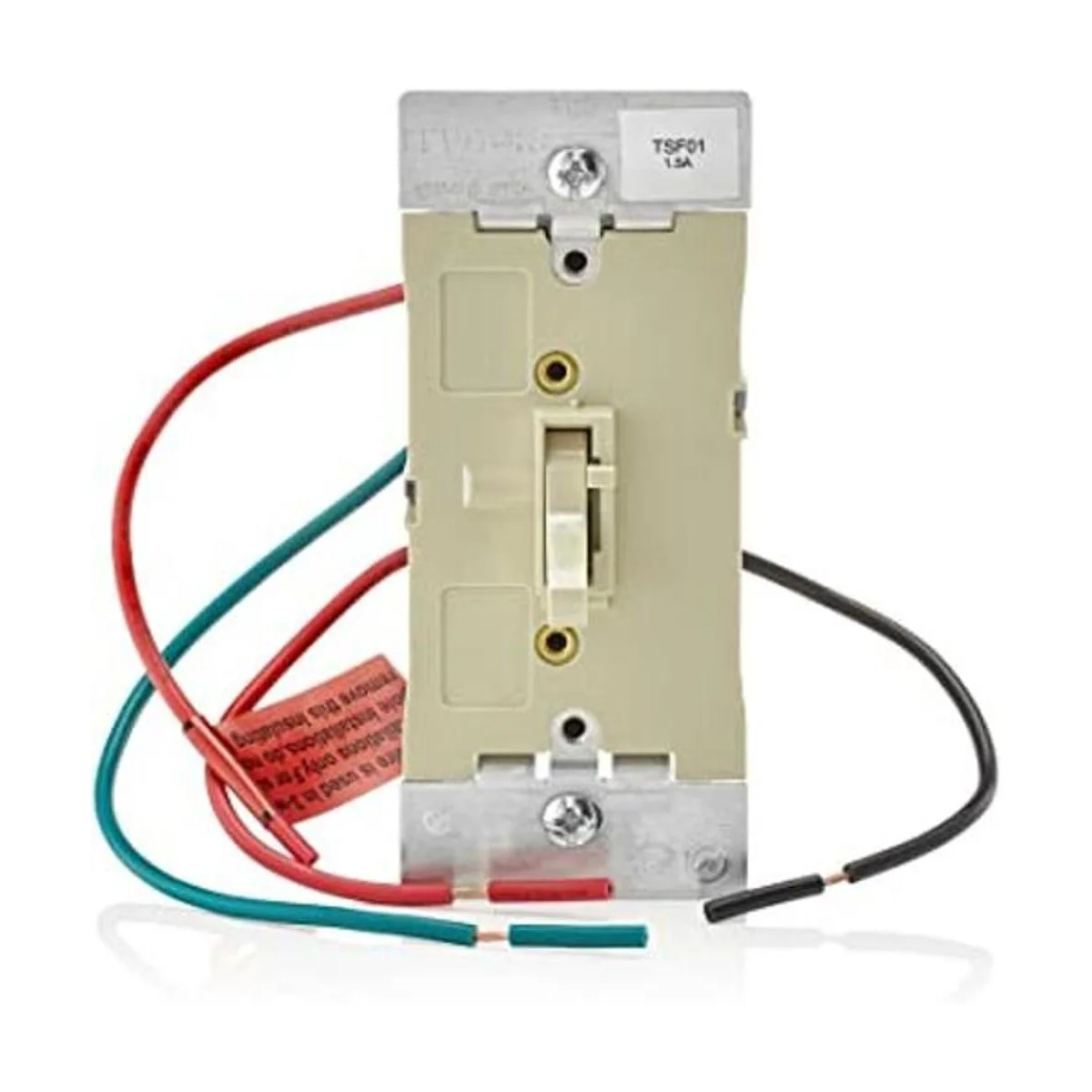 Leviton tsf01 10I Toggle Slide Control de velocidad de ventilador, 1,5 A120VAC 60 Hz, Solo Polo o de 3 Vías, Marfil, Marfíl, TSF0110I
