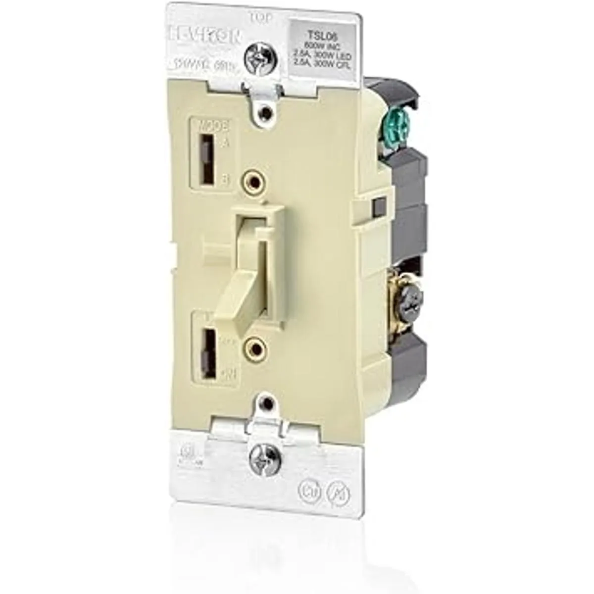 Leviton TSL061LT Interruptor universal con atenuador, de 300 W, LED regulable y CFL, 600 W, para luz incandescente y halógeno, para un solo poste o 3 vías, con luz de localización