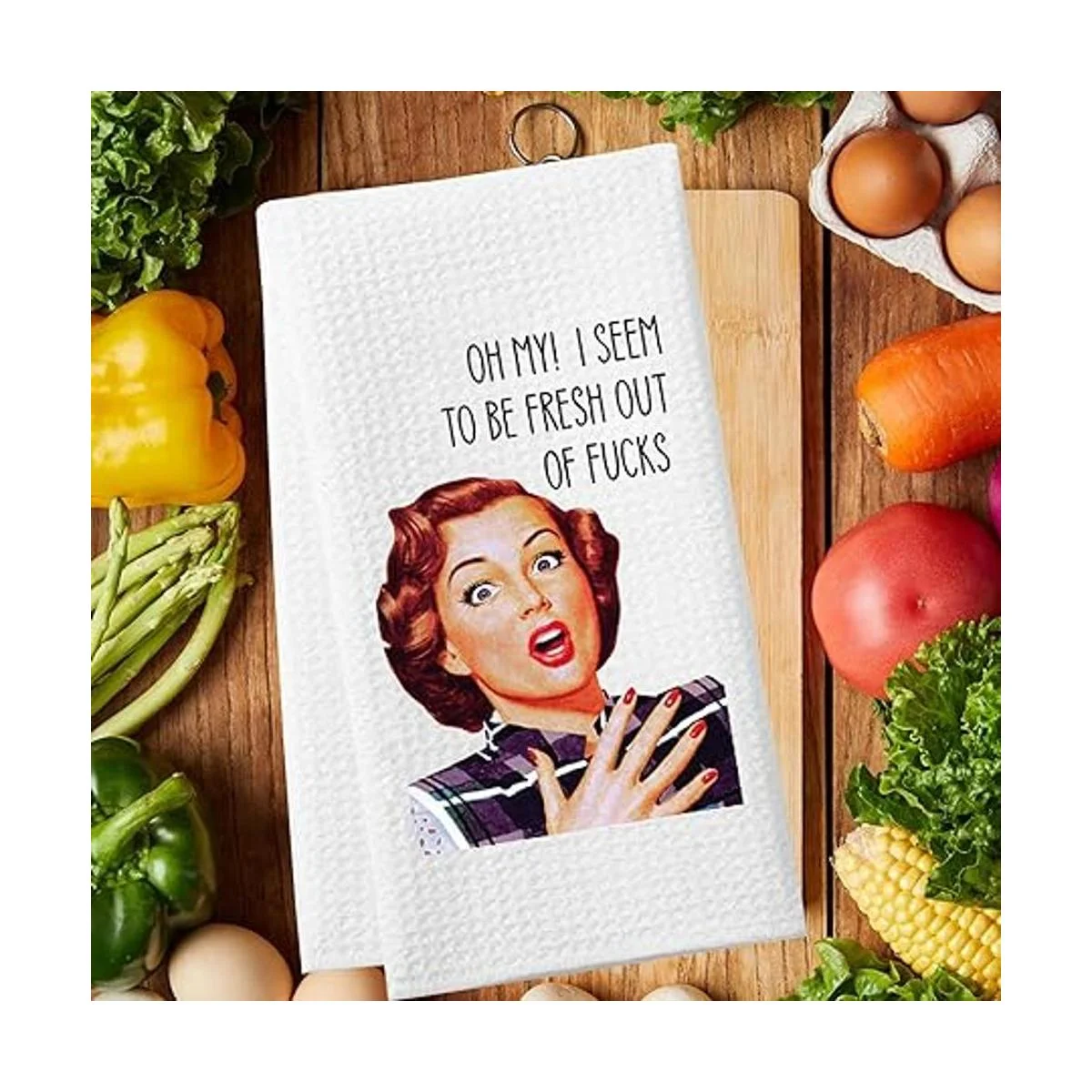 LEVLO Toalla de cocina retro con diseño retro de Ama de casa con texto Oh My I Seem to Be Fresh Out of Fucks Oh My I Seem