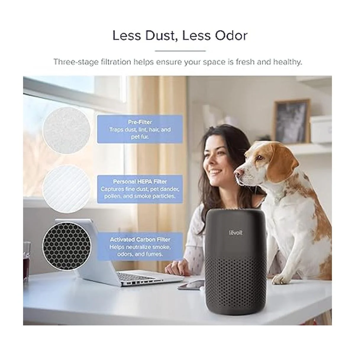 Refresca y relaja: si luchas con alergias, sueño de baja calidad, congestión o síntomas causados por la caspa de mascotas, el mini purificador de aire Levoit Core está listo para ayudarte a crear un espacio saludable