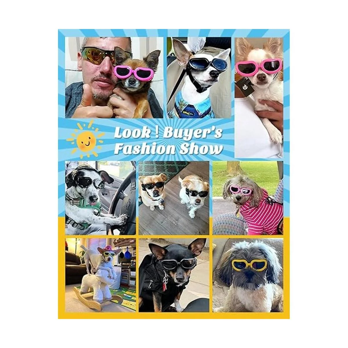 Material: las lentes están hechas de resina de CA, marco de gafas con material EVA PC, duradero, ligero, cómodo, apto para perros pequeños como accesorios de fotos o espectáculos, uso de rendimiento. Proporciona la mayor protección ocular contra los rayos UV, el viento, el agua y los residuos.