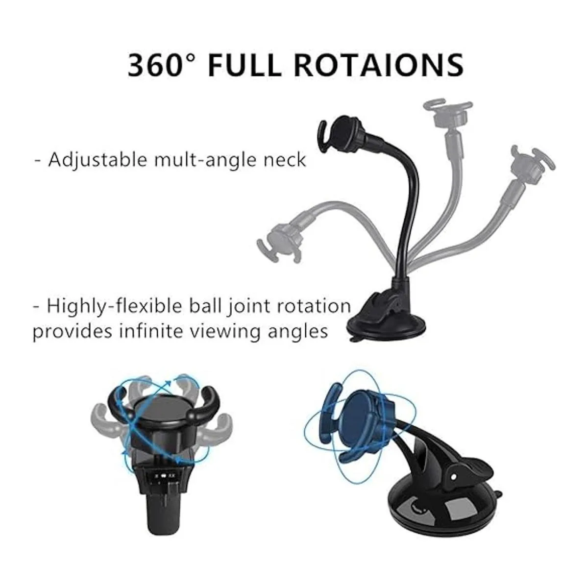 Paquete económico Este soporte para coche está especialmente diseñado para sostener teléfonos, incluye soporte para teléfono de salpicadero, soporte para teléfono de parabrisas, soporte para teléfono de ventilación de aire con 3 cabezales de montaje para coche y 2 agarres plegables para teléfono.