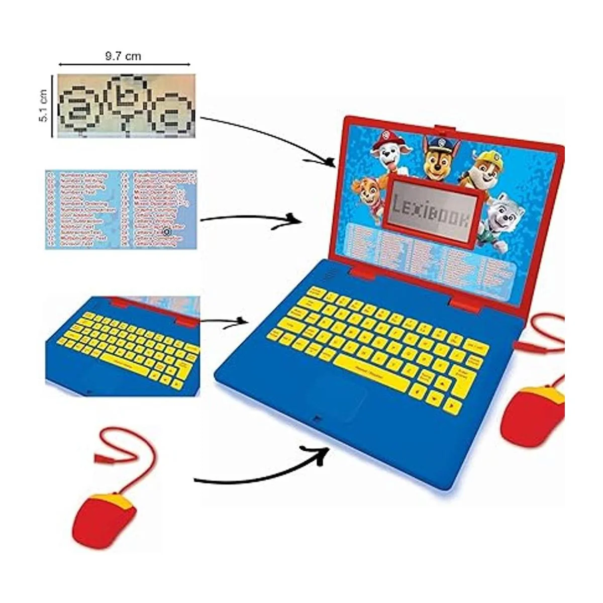 LEXiBOOK Paw Patrol Laptop educativa y bilinge en españolinglés, juguete para niños y niñas niños y niñas 124 actividades, aprende juegos y música con Chase Marshall RojoAzul JC598PAi2