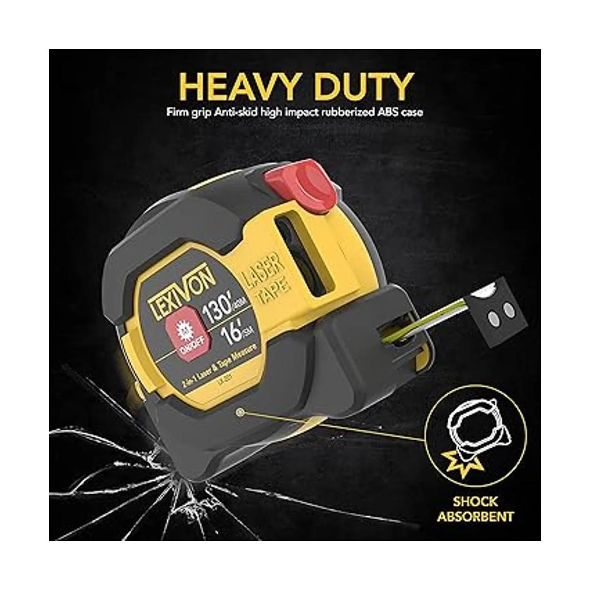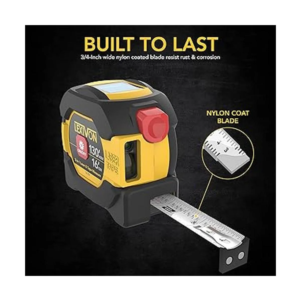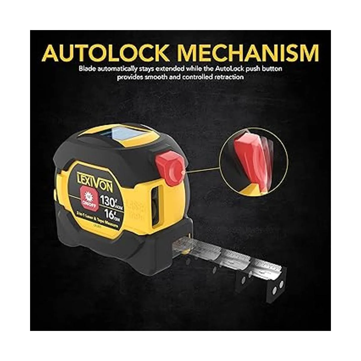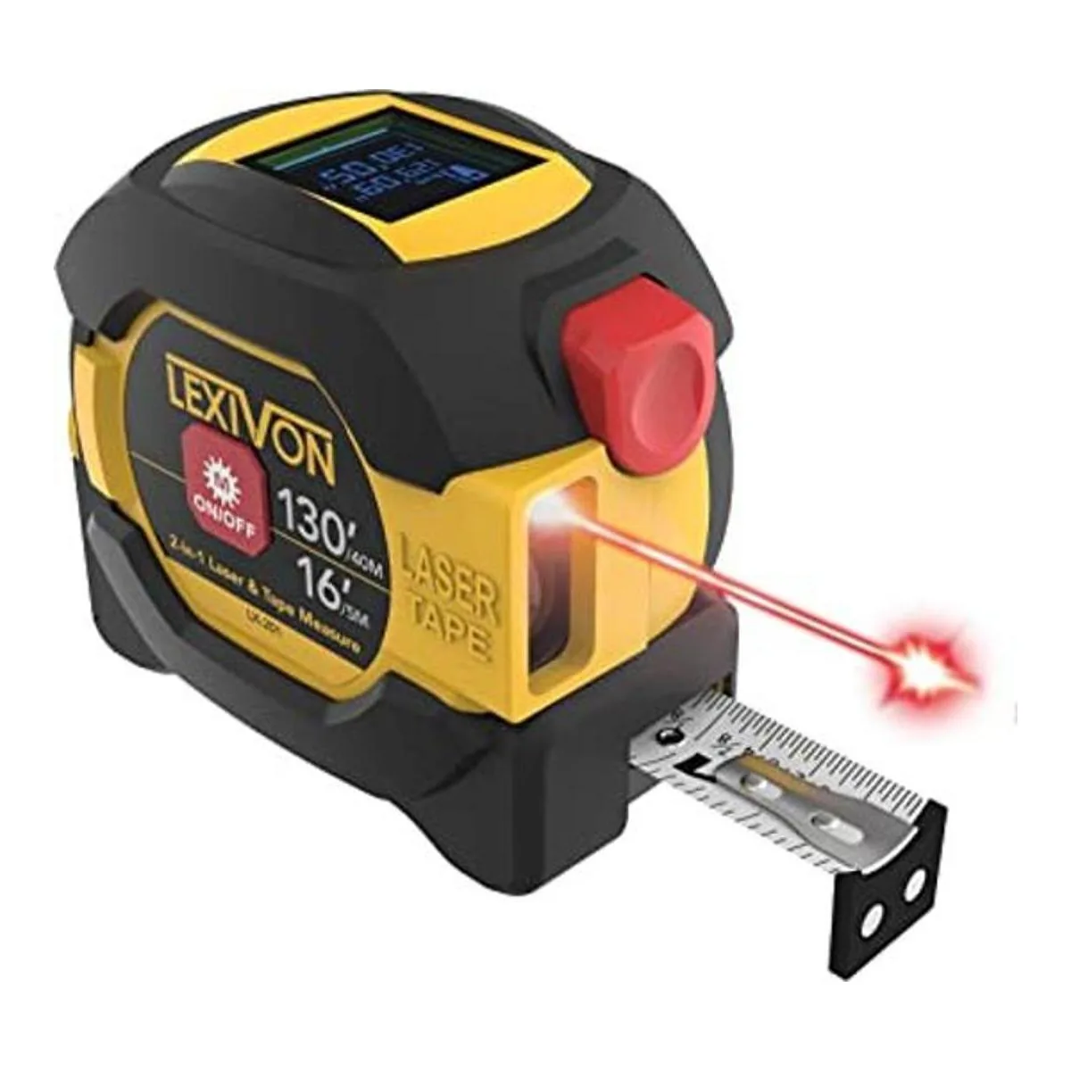 LEXIVON Cinta métrica láser digital 2 en 1 Pantalla de medidor de distancia láser de 130 pies131.2 ft en pantalla LCD retroiluminada con cinta métrica de autobloqueo de 16 pies16.4 ft FtInchFraccionesMmm LX201