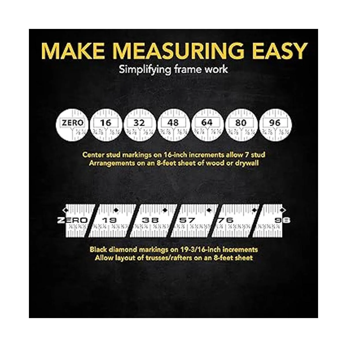 Precisión: las medidas fraccionadas y continuas que se muestran en una pantalla LCD grande son precisas a 1/16 pulgadas, hasta 130 pies