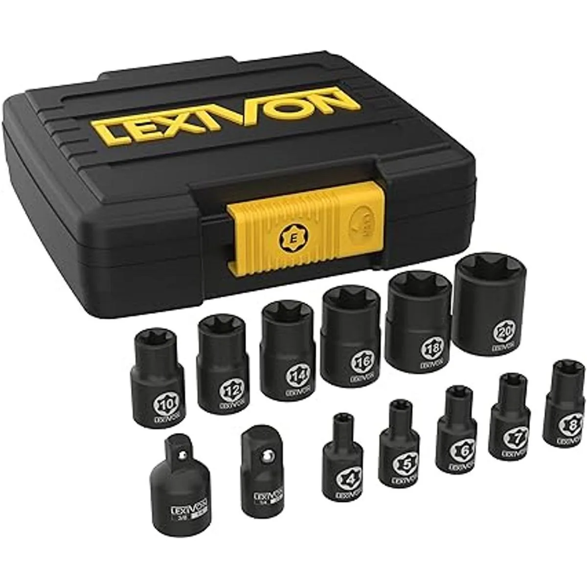 LEXIVON ETORX Juego de llaves de acero de aleación de cromo vanadio Juego de llaves hembra E4 E20 Estuche de almacenamiento mejorado LX147