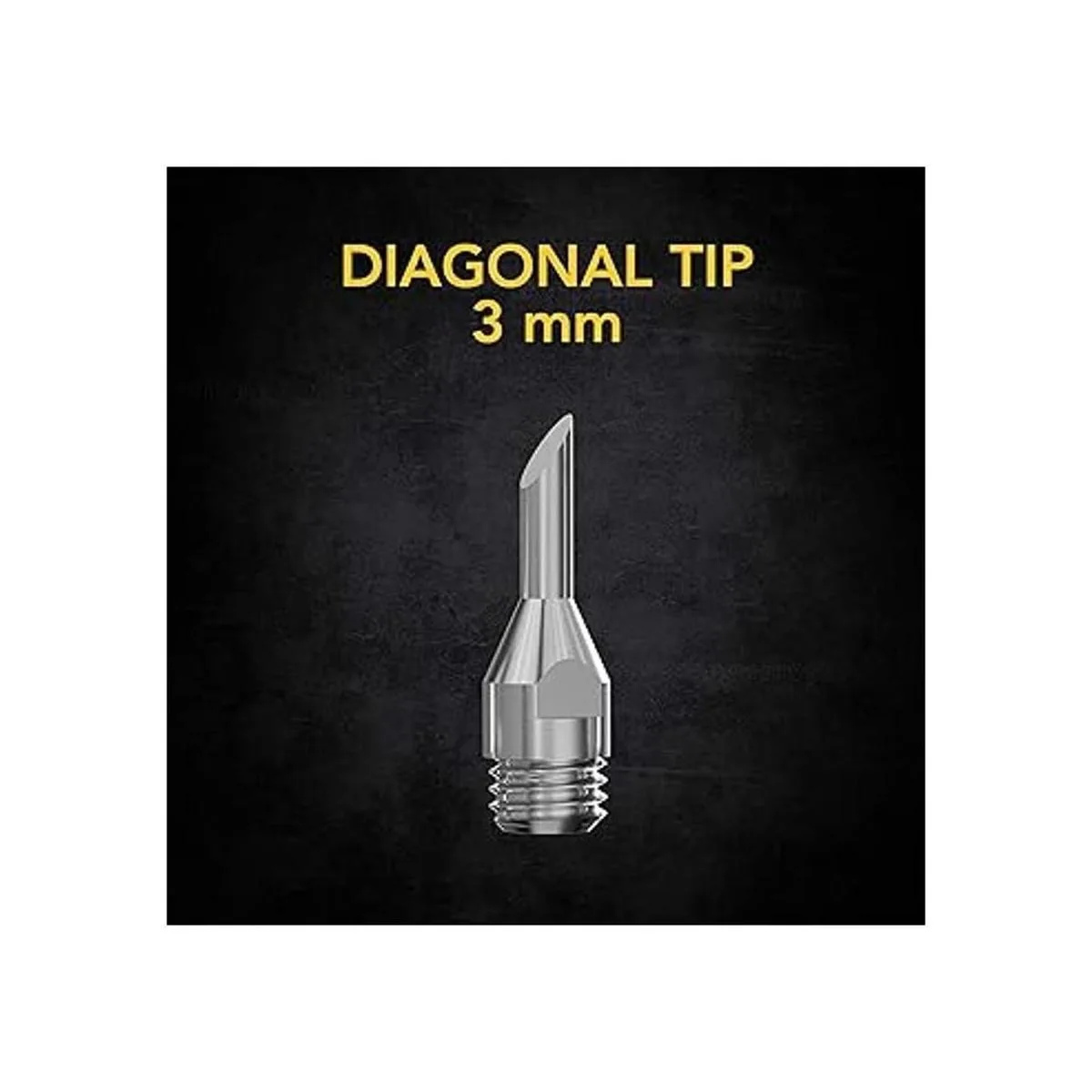 7 piezas: cabeza/catalizador, punta de soldadura estándar, punta diagonal de 0.118 in, punta de cincel de 0.138 in, cuchillo caliente, soplador caliente de 0.157 in y deflector.