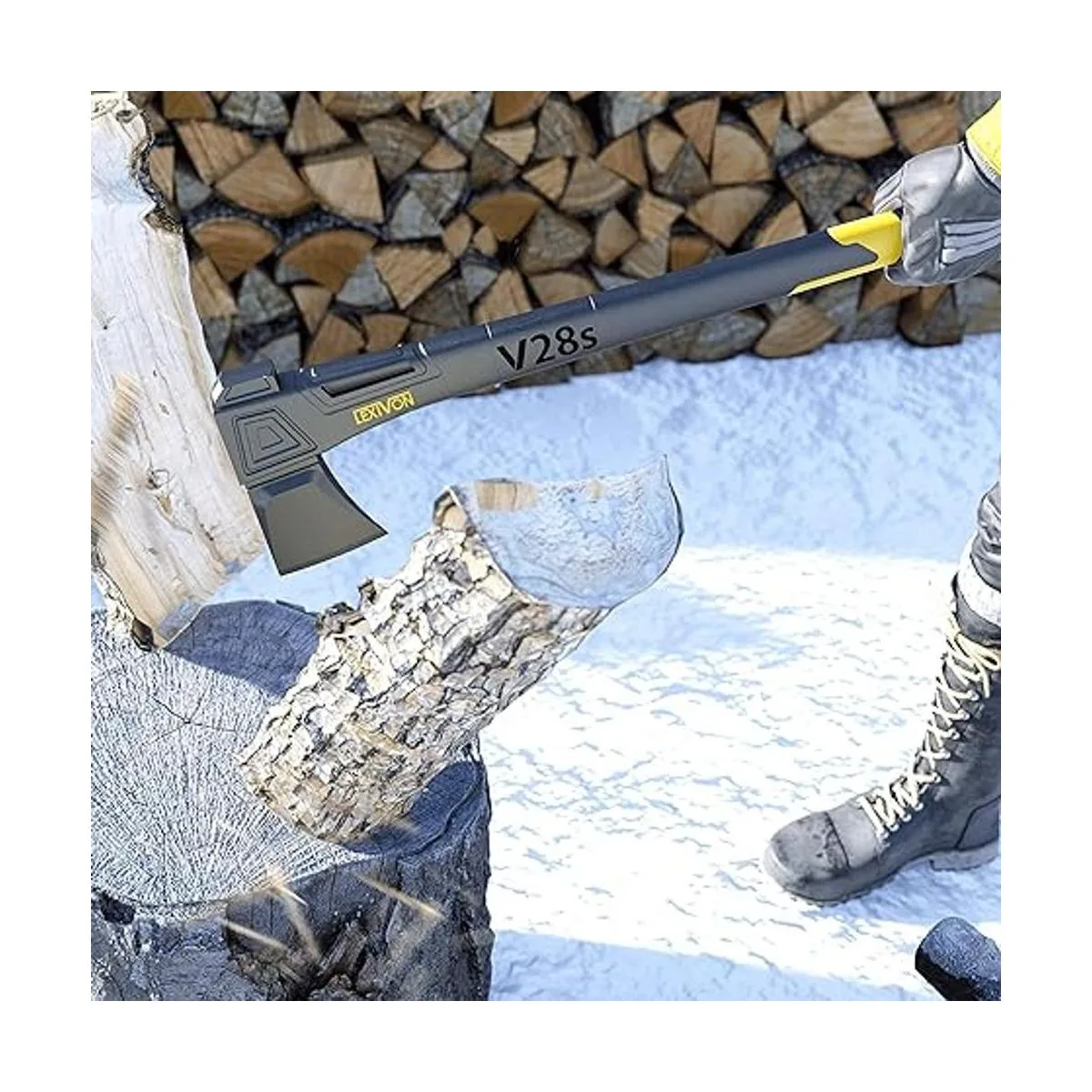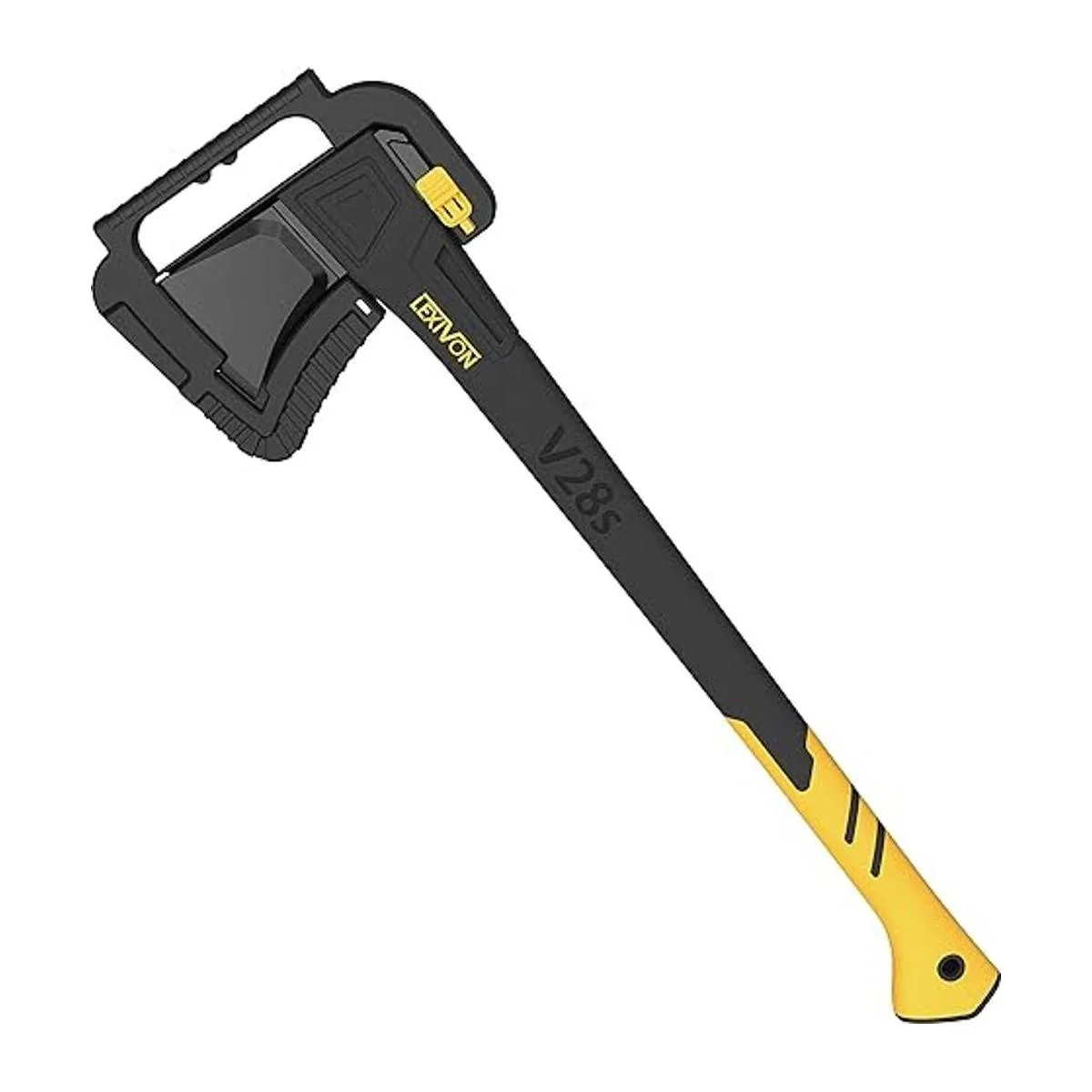 LEXIVON V28s Hacha de división de 28 pulgadas, mango compuesto de fibra de vidrio ligero y agarre ergonómico TPR Funda protectora de transporte incluida LXV28s