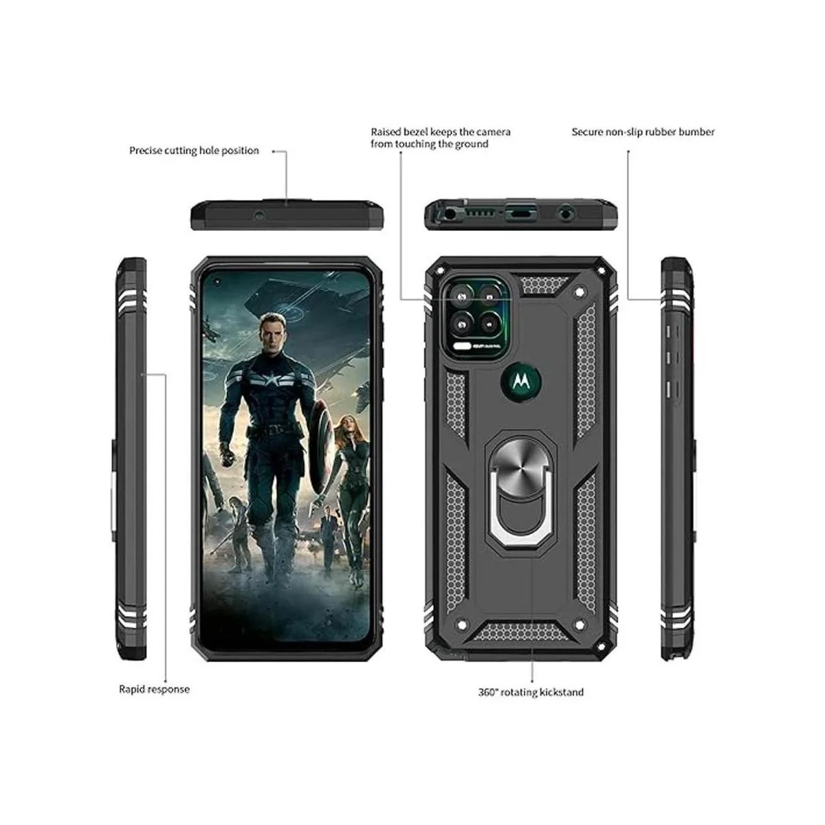 Corte preciso: todos los botones e interfaz de diseño fácil de usar para evitar el desmontaje frecuente. Y los recortes perfectos para altavoces, cámara y agujero de carga te permiten un fácil acceso a todas las funciones y conveniente para cargar tu teléfono sin quitar la funda.