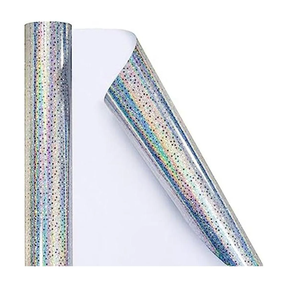 LeZakaa Papel de regalo holográfico plateado, mini rollo, estampado de estrellas para cumpleaños, boda, compromiso, 17.32 pulgadas x 32.8 pies 47.23 pies cuadrados