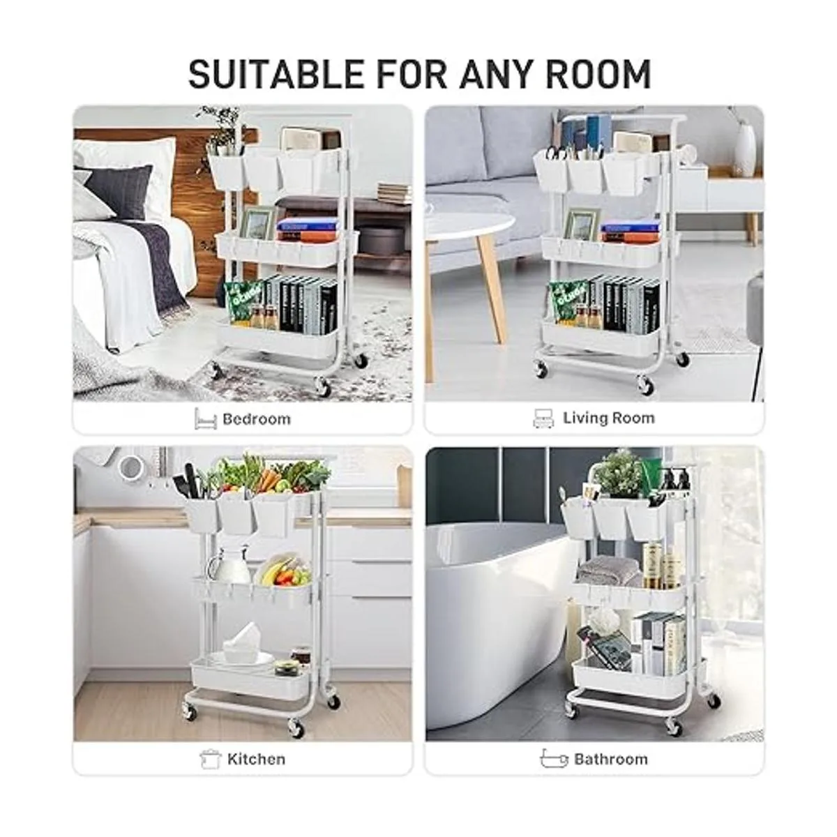 LEZIOA Paquete de 5 soportes para tazas colgantes, accesorios multiusos para carrito rodante, accesorios de carrito utilitario para suministros de arte y manualidades, cesta de almacenamiento colgante que ahorra espacio, organizador de maquillaje (blanco)