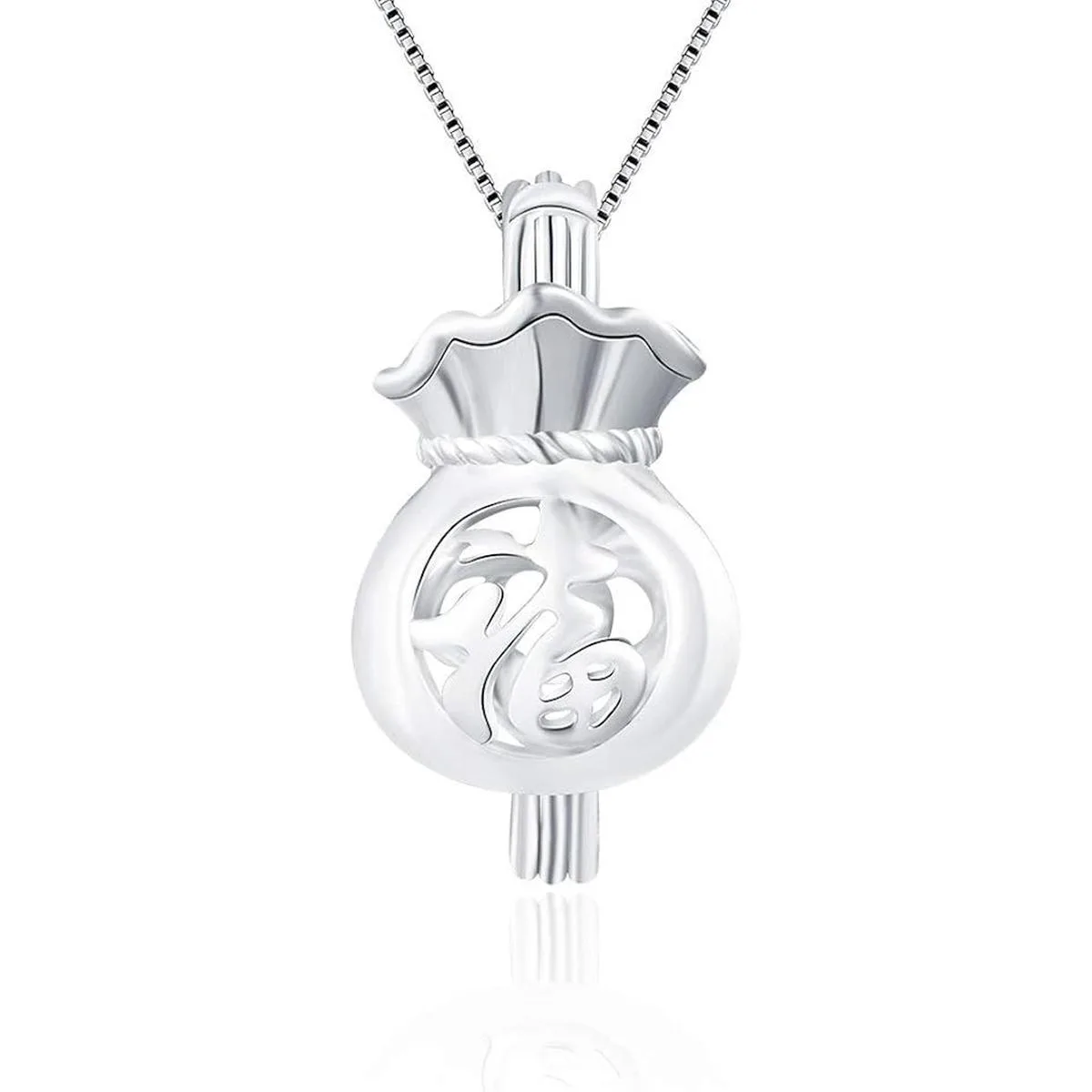 LGSY Bolsa de la suerte de plata de ley 925 grabada china Fu Cage Pendants Crafting Charm para bricolaje Collar Pulsera Joyería, Metal, no conocido