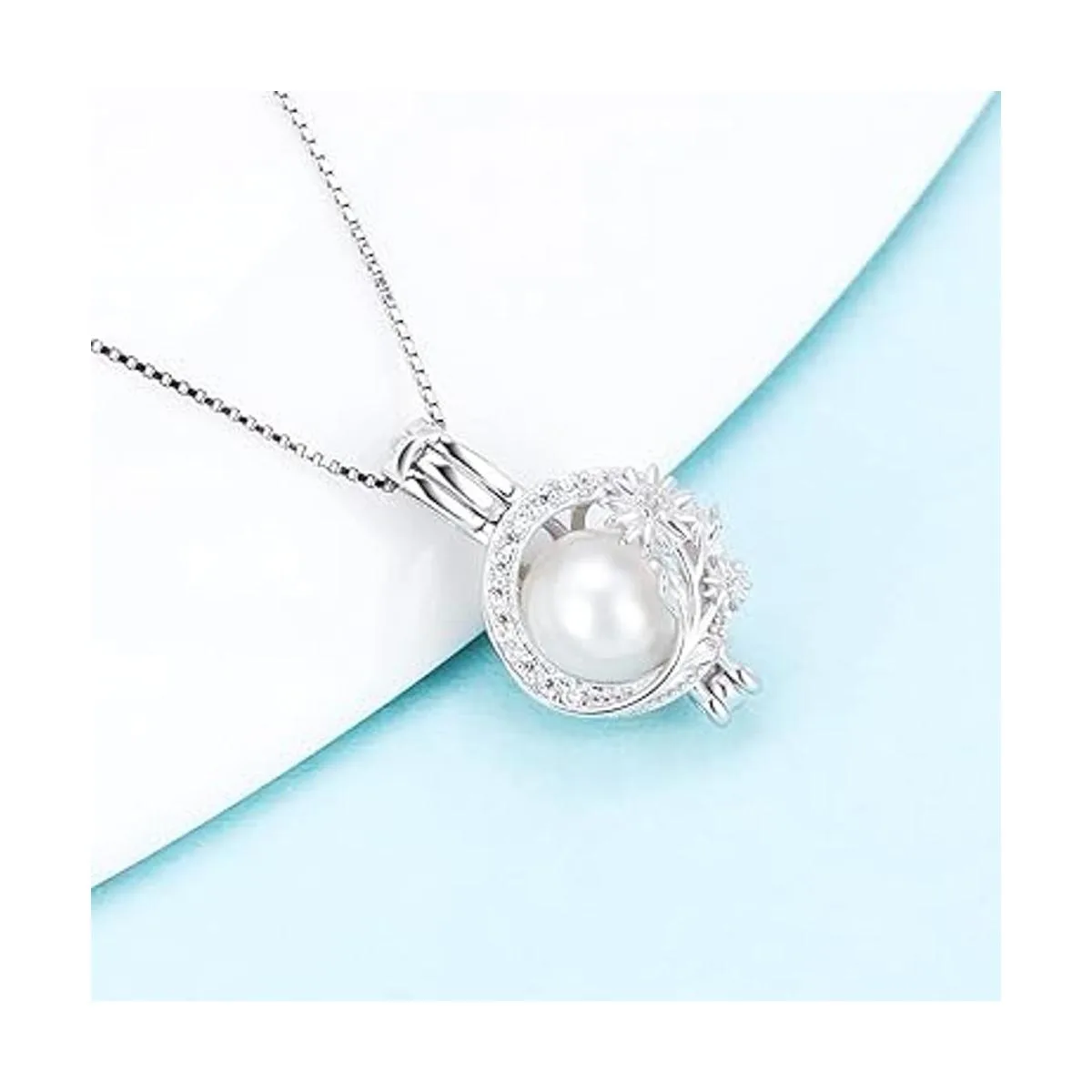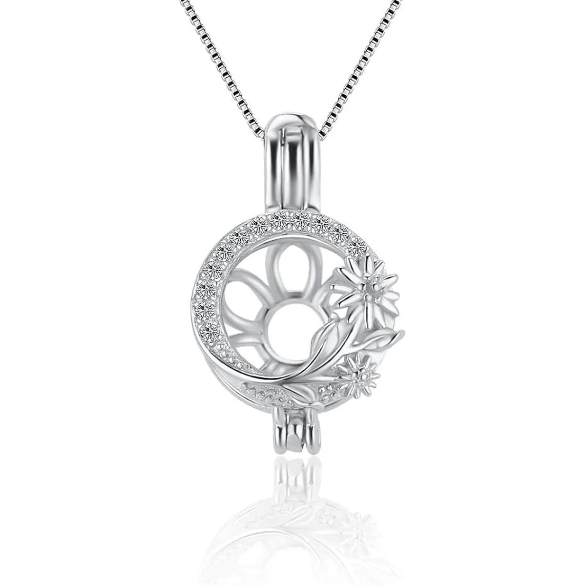 LGSY Colgantes de jaula de circonita cúbica para hacer joyas de perlas de plata de ley, colgantes de jaula de perlas para regalo adorable, Metal, no conocido