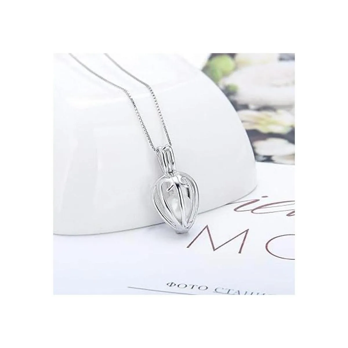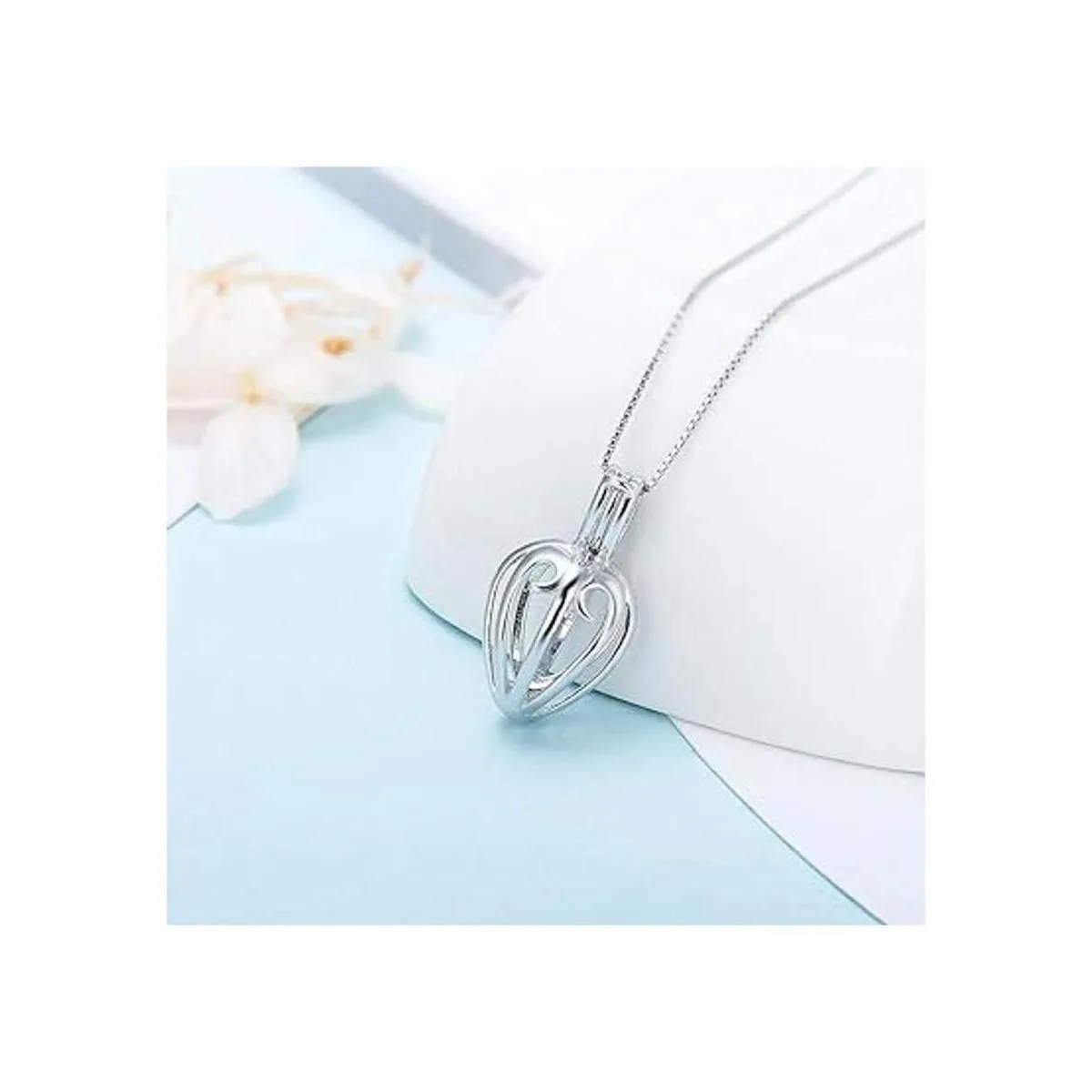 LGSY Colgantes de jaula de corazón simples para hacer joyas de perlas de plata de ley, colgantes de jaula de perlas para regalo adorable, Metal