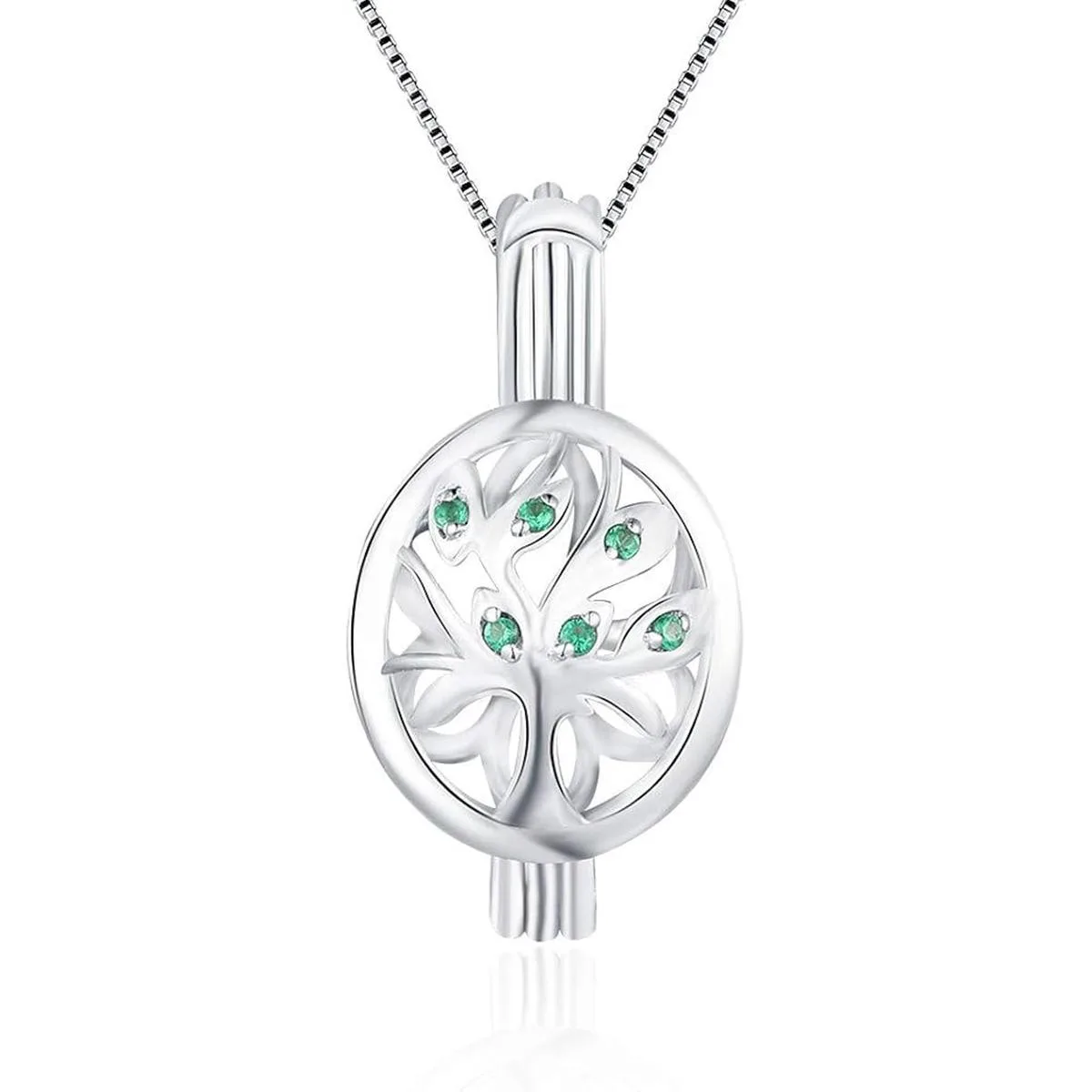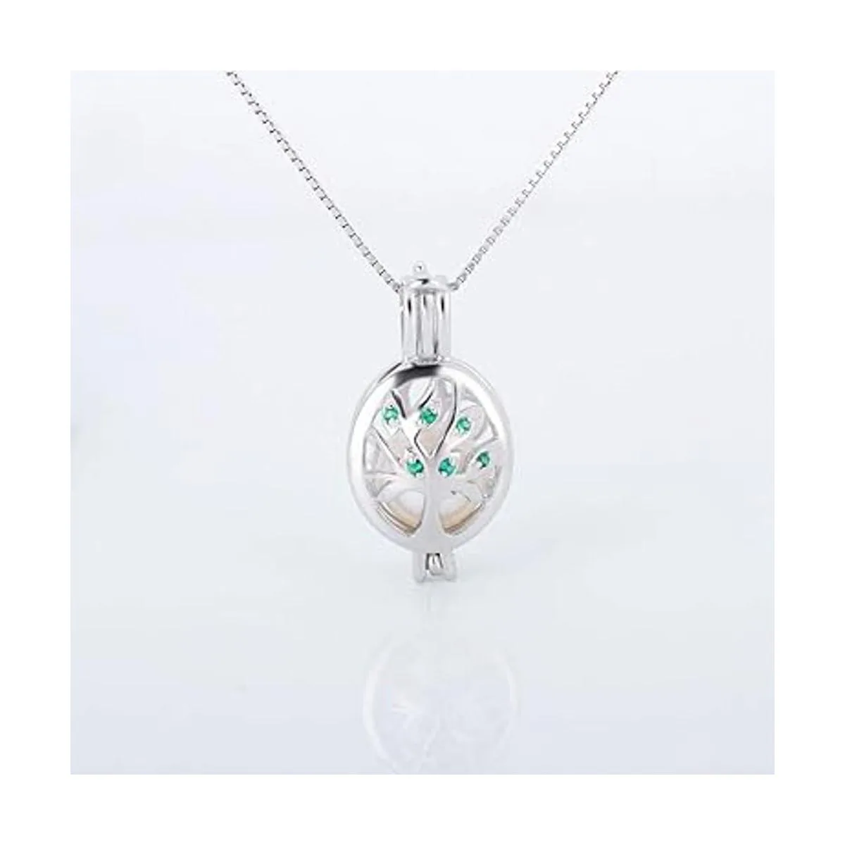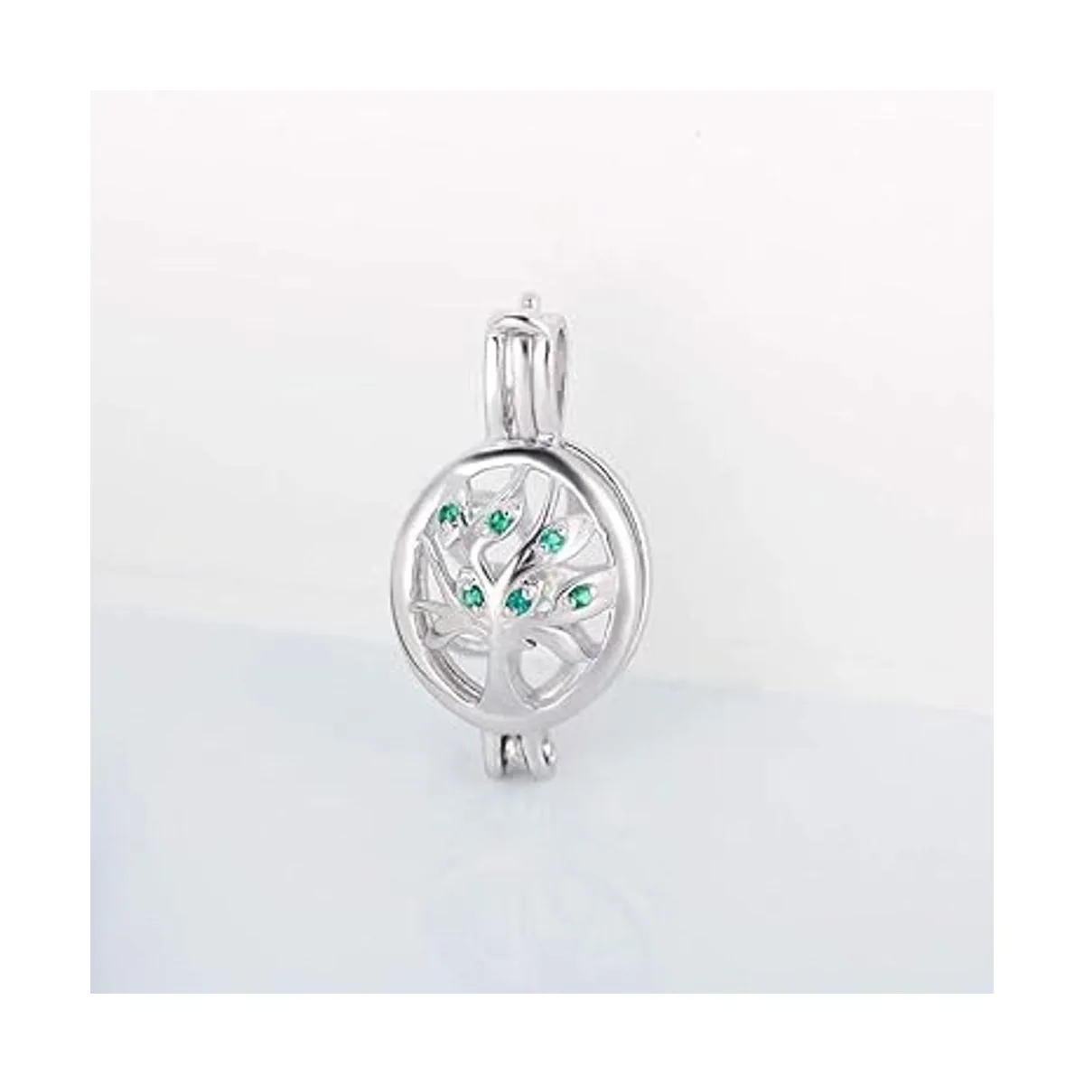 LGSY Colgantes de jaula de perlas de árbol de plata de ley con circonita cúbica verde para mujer, colgantes de jaula de perlas para fabricación de joyas de perlas, medallones difusores de aceites esenciales para joyas de perlas, Metal, Circonita cúbica