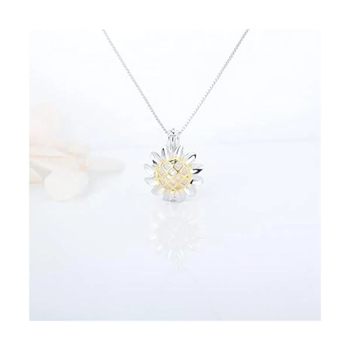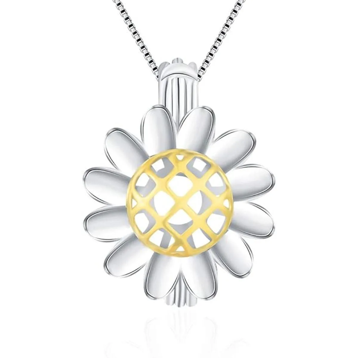 LGSY Colgantes de jaula de perlas de girasol de plata esterlina para mujer, colgantes de jaula de perlas para fabricación de joyas de perlas, medallones difusores de aceite esencial para joyería de perlas, Metal, no conocido