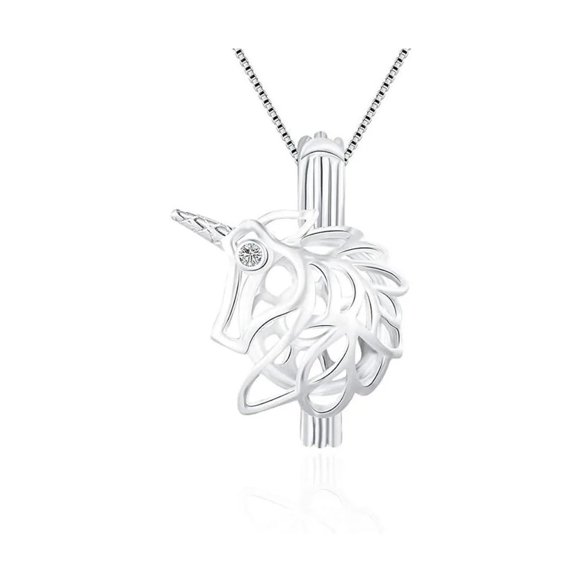 LGSY Colgantes de jaula de unicornio para hacer joyas de perlas de plata de ley, colgantes de jaula de perlas para regalo adorable, Metal
