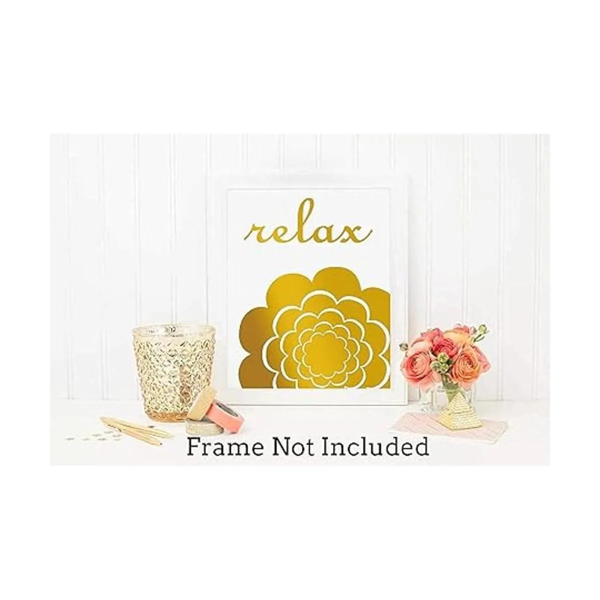 Composición de impresión artística: los accesorios de baño dorados están hechos de una hermosa lámina dorada de lujo impresa en cartulina blanca gruesa de alta calidad. La lámina dorada no se cae fácilmente y el oro cambiará con la luz.