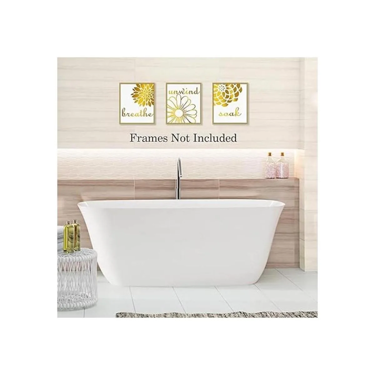 Sin marco: prepara 4 marcos de 8 x 10 pulgadas antes de recibir este juego de decoración de baño dorado.