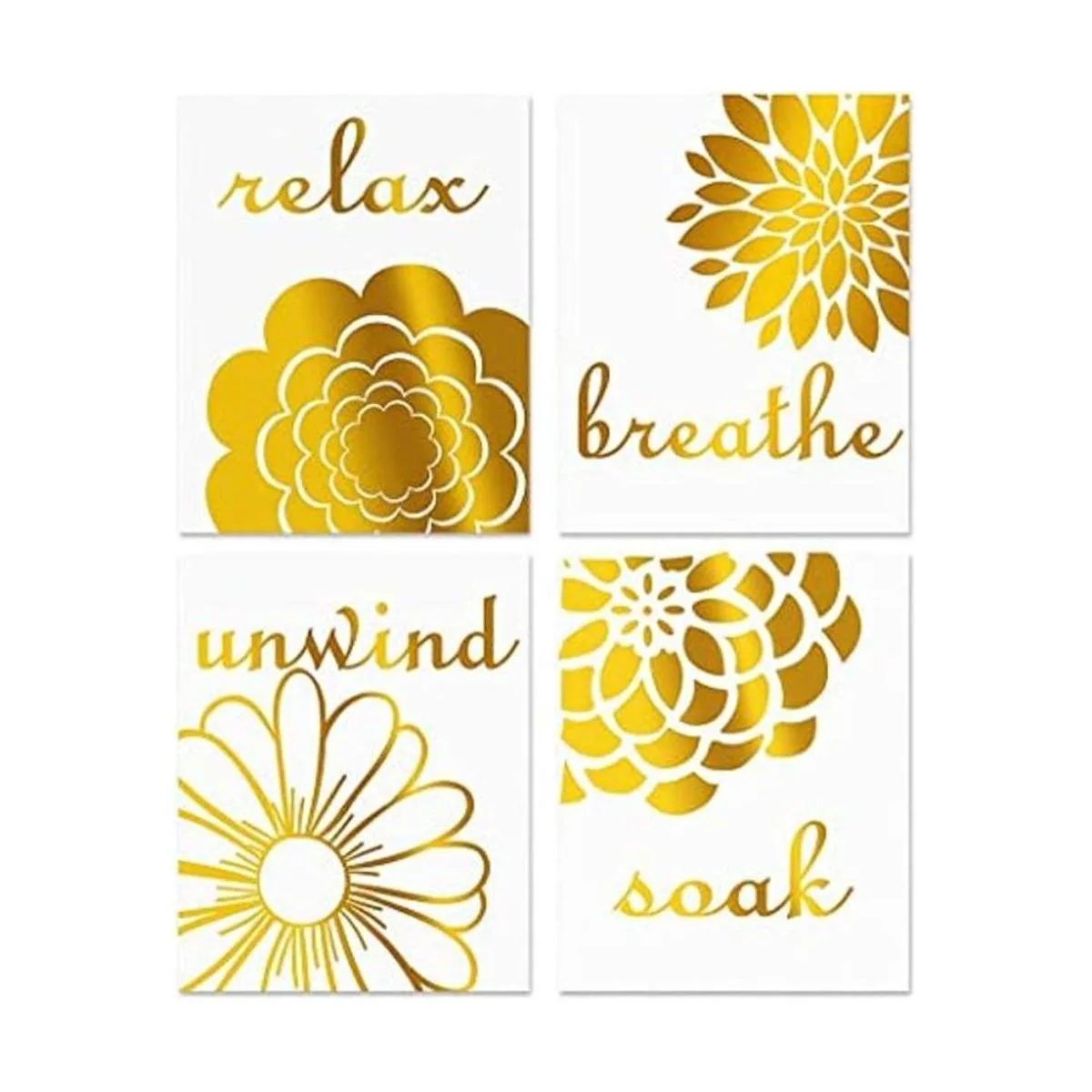 Obra de arte inspiradora elegante: esta decoración relajante incluye 4 piezas cuatro tipos de flores abstractas con estampado dorado, que es un gran regalo para tus colegas, amigos, niños y familia. Animalos con este arte de pared relajante.