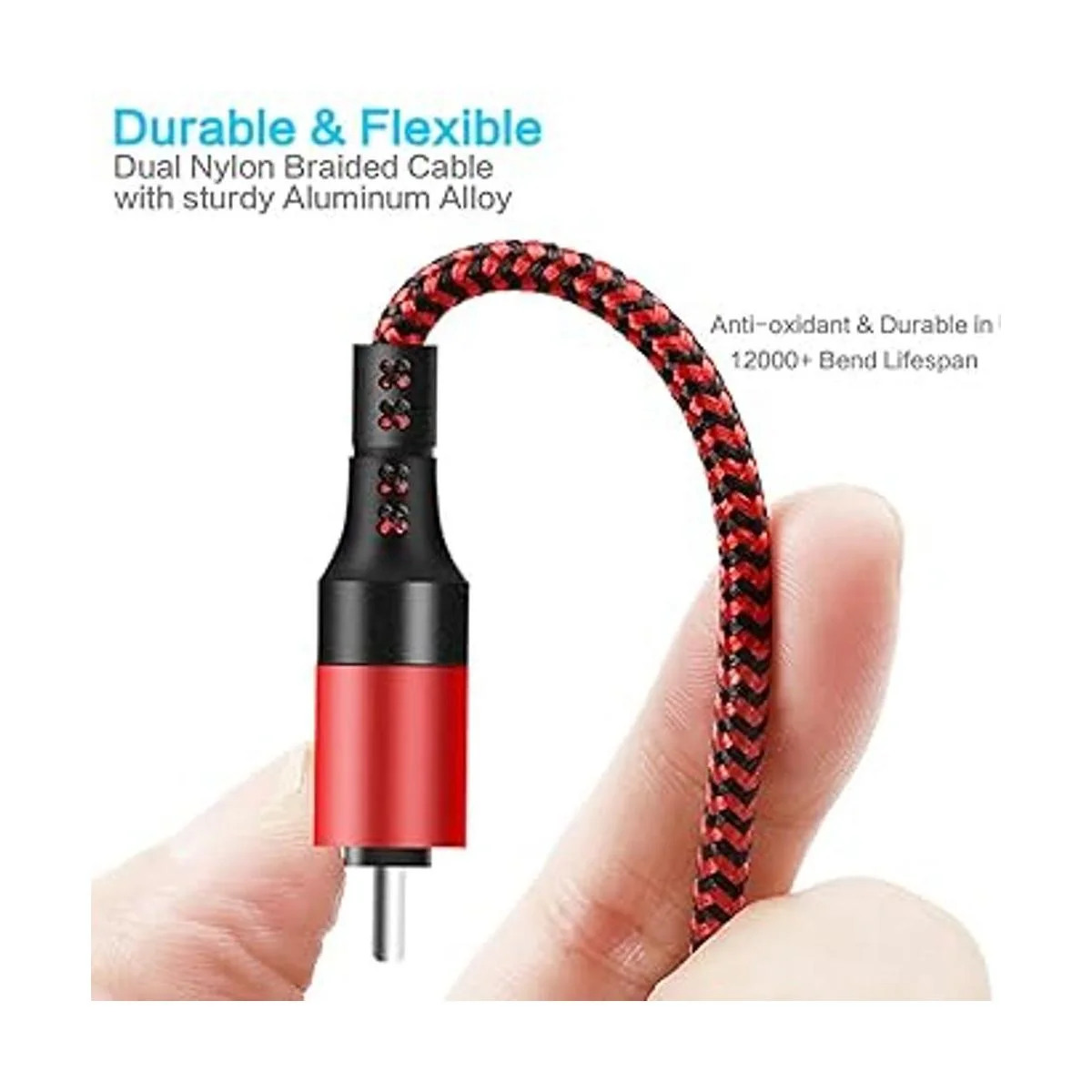 Diseño duradero y sin enredos: cable trenzado de tela con carcasas de conector de aluminio reforzado que resiste el desgaste y la flexión y es resistente a la intemperie, mucho más duradero que los cables de plástico normales.