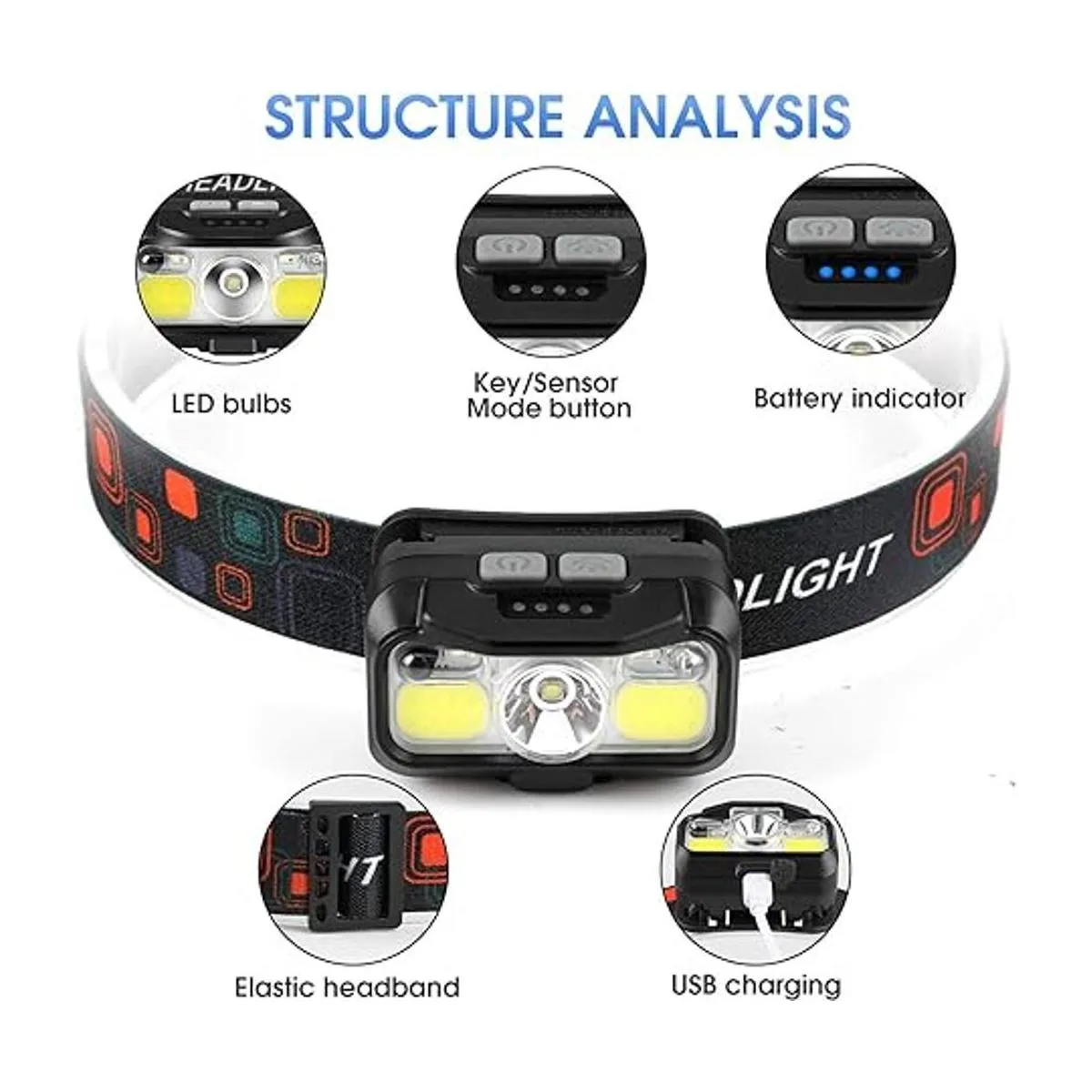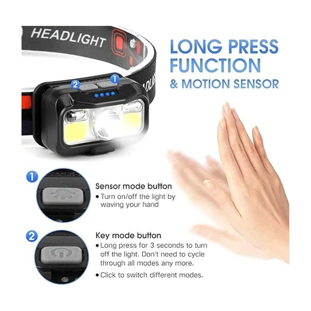 Súper brillante y sensor de movimiento: la linterna frontal utiliza chips LED líderes en su clase que tienen el máximo brillo de 1100 lúmenes, ilumina fácilmente toda una tienda de campaña y carretera, incluso la montaña. Añade el modo de sensor de movimiento, puedes encender y apagar fácilmente las luces agitando tu mano, lo que es más conveniente y evita ensuciar el faro cuando tus manos están sucias.