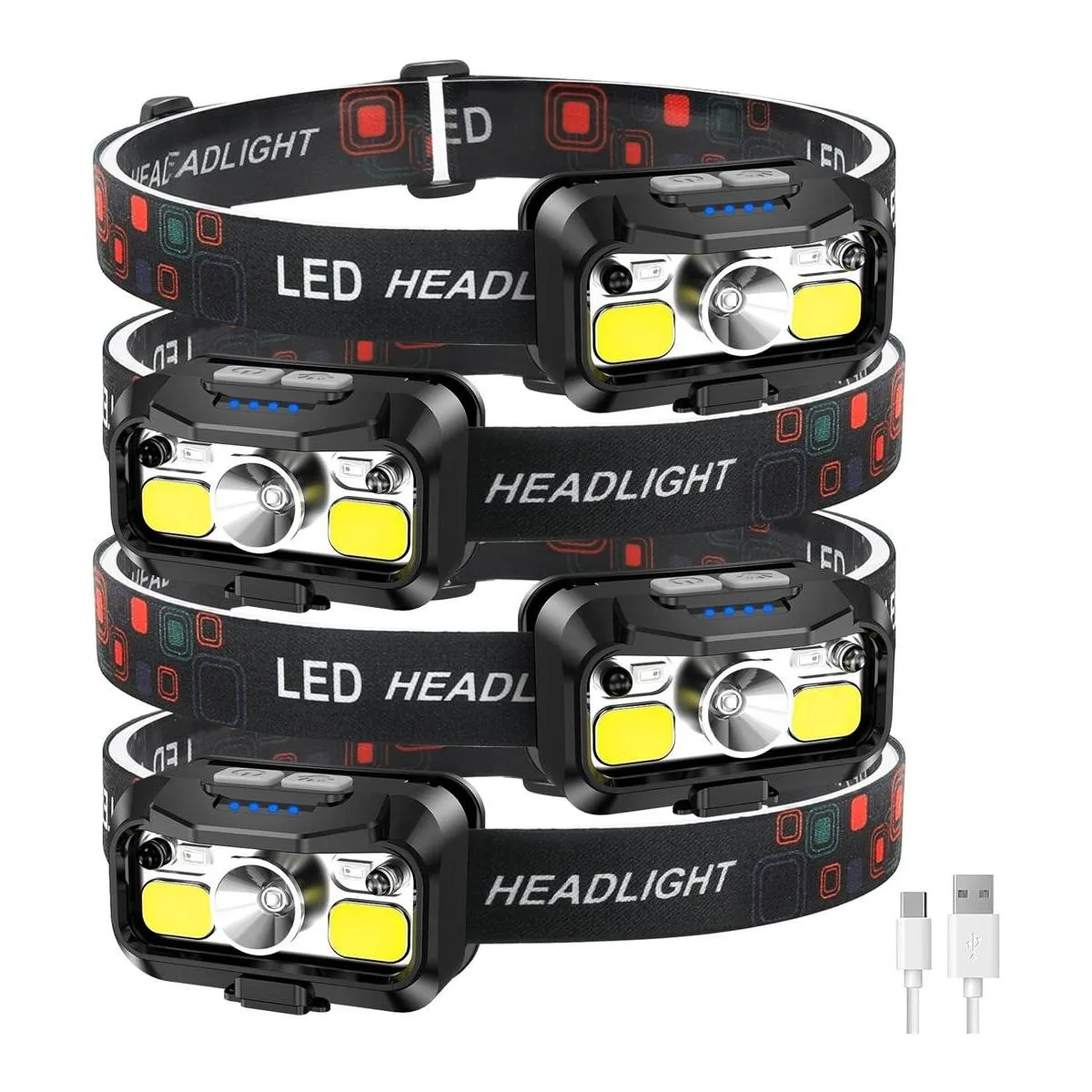 LHKNL LHKNL 1100 lúmenes, lámpara de cabeza con sensor de movimiento súper brillante, linterna LED impermeable con luz blanca roja, 8 modos de luces principales para campamento, ciclismo, correr, pescar, paquete de 4