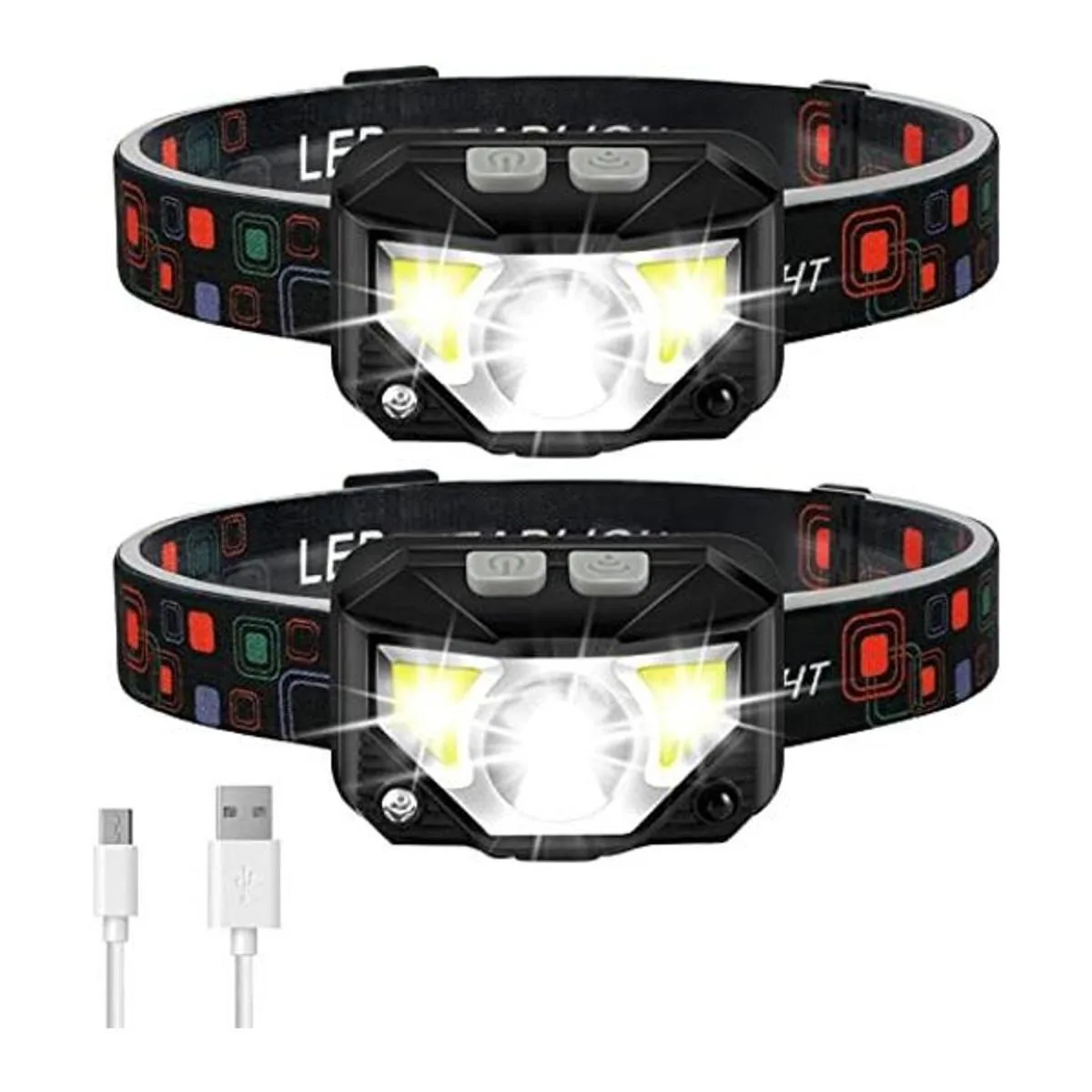 LHKNL Linterna para faros delanteros, 1100 lúmenes, luz LED brillante y recargable con luz blanca roja, paquete de 2 lámparas de cabeza con sensor de movimiento impermeable, 8 modos para acampar al aire libre, correr, ciclismo, pesca
