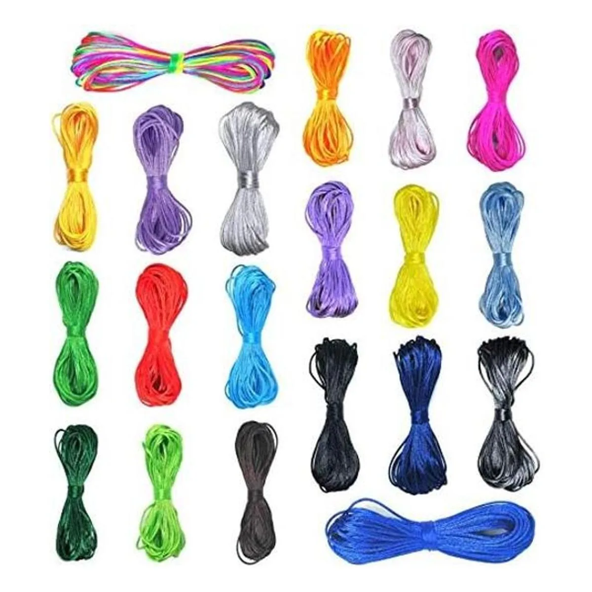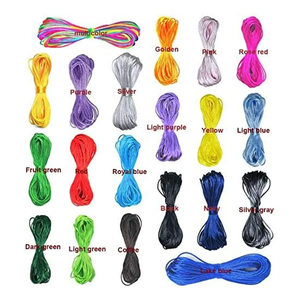 20 colores: negro, rosa, verde oscuro, rojo, colorido, café, naranja, amarillo, azul oscuro, rosa fuerte, azul claro, verde claro, blanco, morado, oro, azul marino, verde, plata, morado claro, más opción de color para bolsas de cordón, adornos para el cabello, joyas, nudos chinos de la suerte, pulseras de cabala de cuerda roja, pulseras de amistad, collares colgantes y envoltorio de regalos.