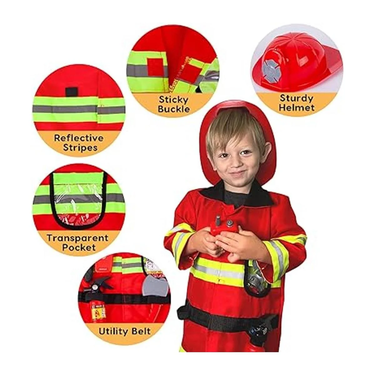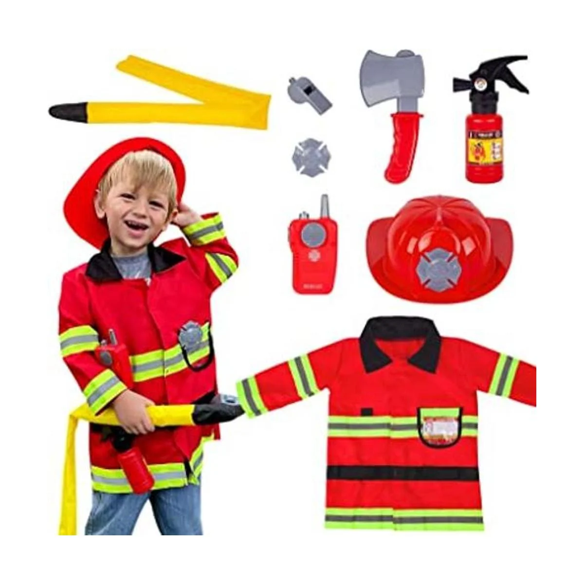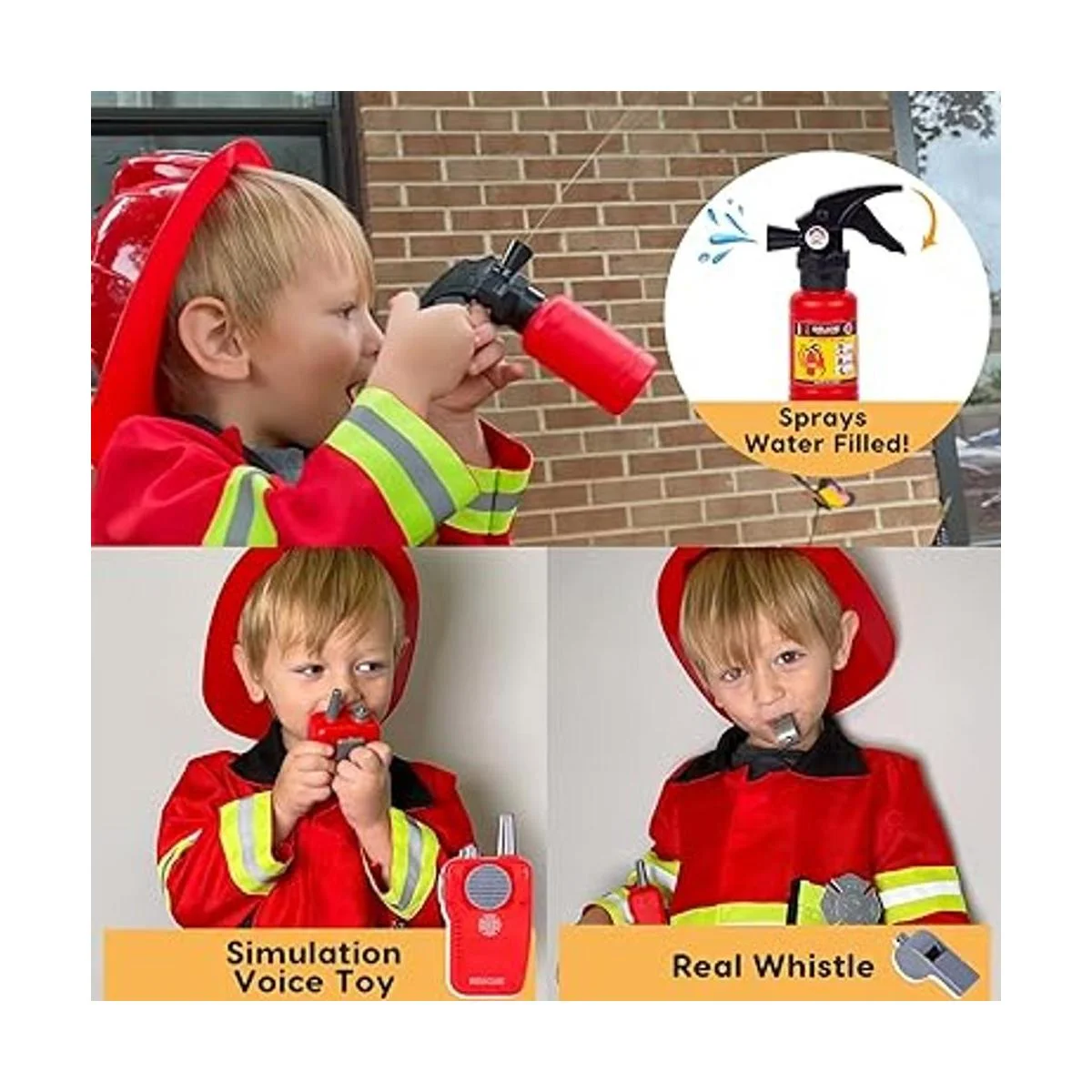 Liberry Disfraz de bombero para niños, herramientas de bombero con disfraz de bombero para niños de 3 a 6 años y extintor, juguetes de bombero, regalos de simulación para niños pequeños, niños, niños y niñas
