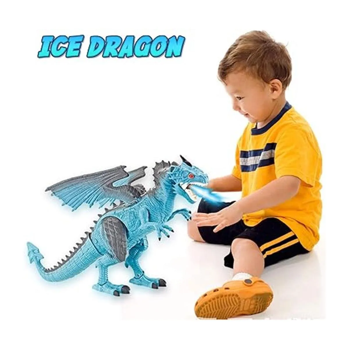 Tamaño grande: con un diseño intuitivo y apto para niños. Acción realista para caminar. Movimiento de cabeza, boca y cuello. Ruidos realistas de dragón con ojos iluminados. Tamaño: 18 x 11 x 5 pulgadas.