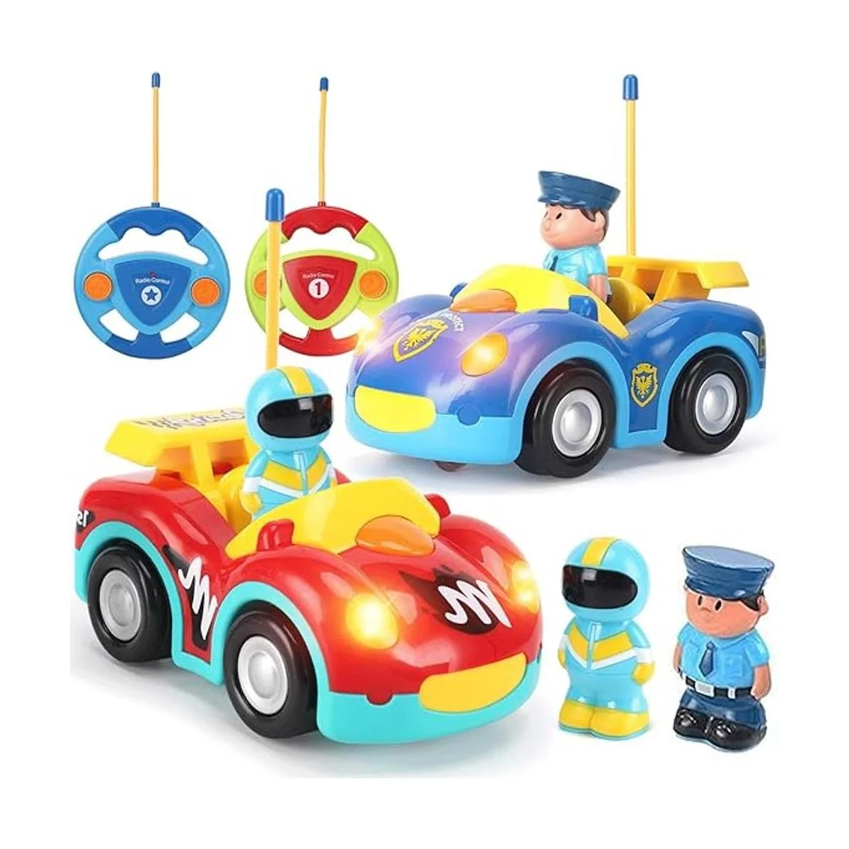 Liberty Imports Juego de 2 juguetes de control remoto para coche y coche de carreras, con música y sonido para bebés, niños pequeños, niños