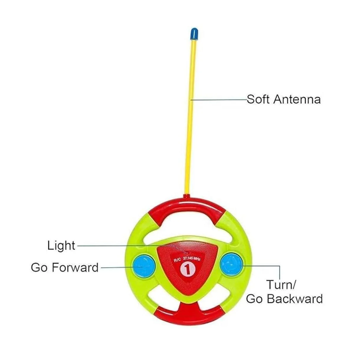 Fácil de controlar: control remoto de 2 canales para adelante y atrás a la izquierda. Diseñado como un primer juguete de control remoto para niños, este coche de dibujos animados viene con un controlador RC con forma de volante con sólo 2 botones para un fácil control simple.