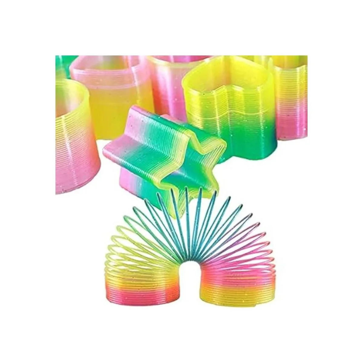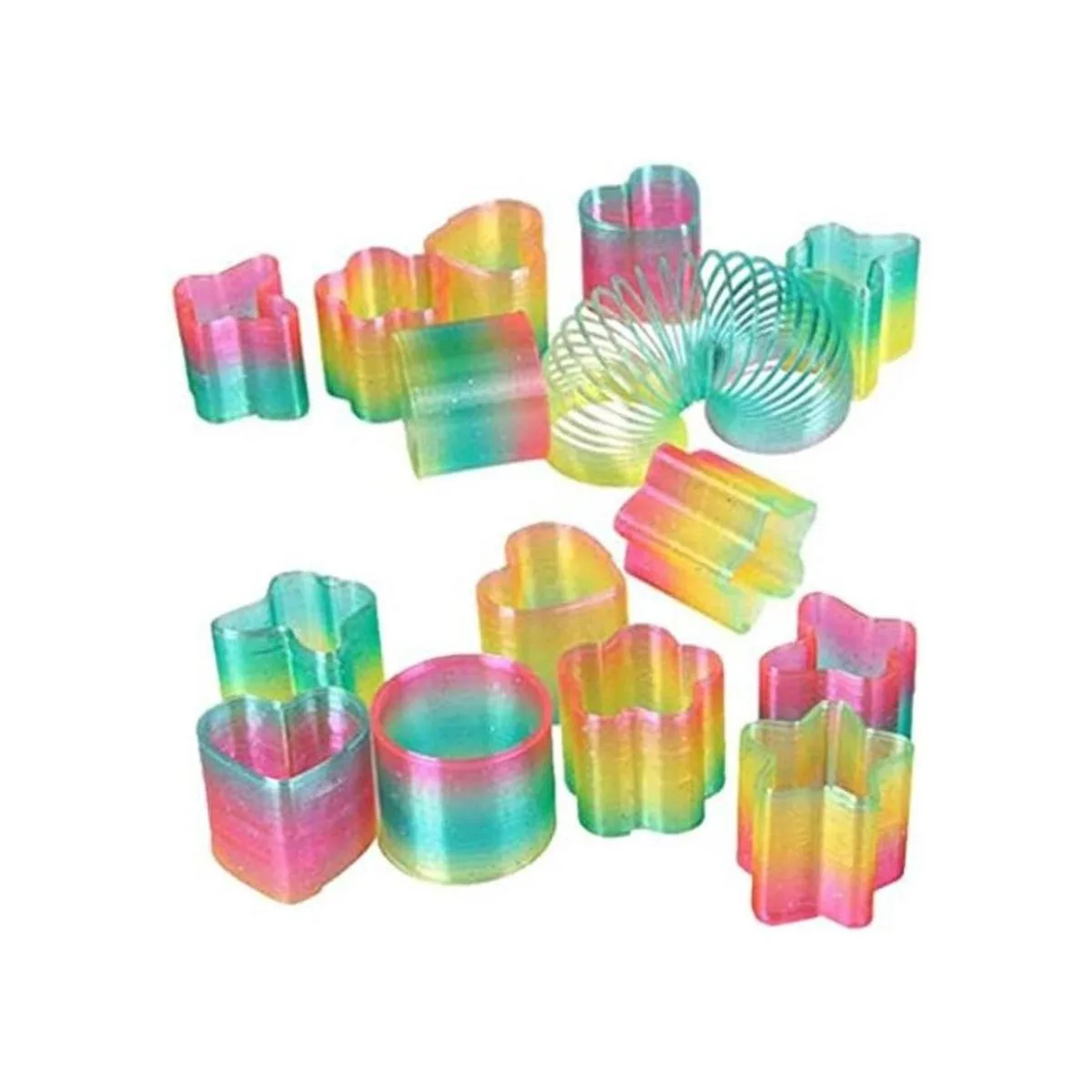 Paquete de 24 mini resortes de plástico arcoíris. Pásalos a los niños como regalos de fiesta para niños y niñas y úsalo como premios de rifa.