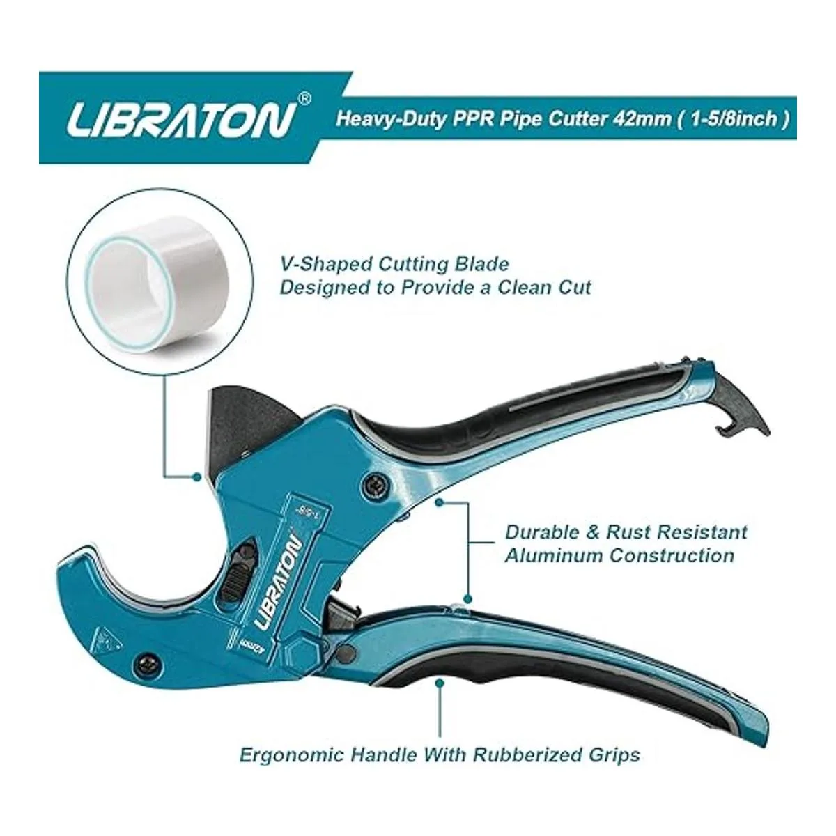 Amplia aplicación: el cortador de tubos Libraton está diseñado para una capacidad de hasta 1.654 in de diámetro exterior, ideal para cortar una variedad de tubos y tubos de plástico PVC, CPVC, PPR, PEX, PE, manguera de goma, etc. , es una herramienta de corte esencial para tu manitas domésticas, fontaneros, electricistas y mecánicos de vehículos.