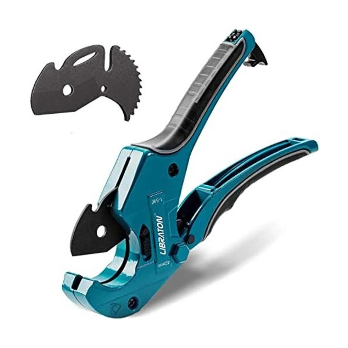 Libraton Cortador de PVC, cortador de tubos y tubos de alta resistencia con hoja de repuesto, herramienta de corte de tubería rápida con una sola mano con trinquete para cortar hasta 158 pulgadas PEX, PVC, PPR mangueras de plástico y tubería de fontanería