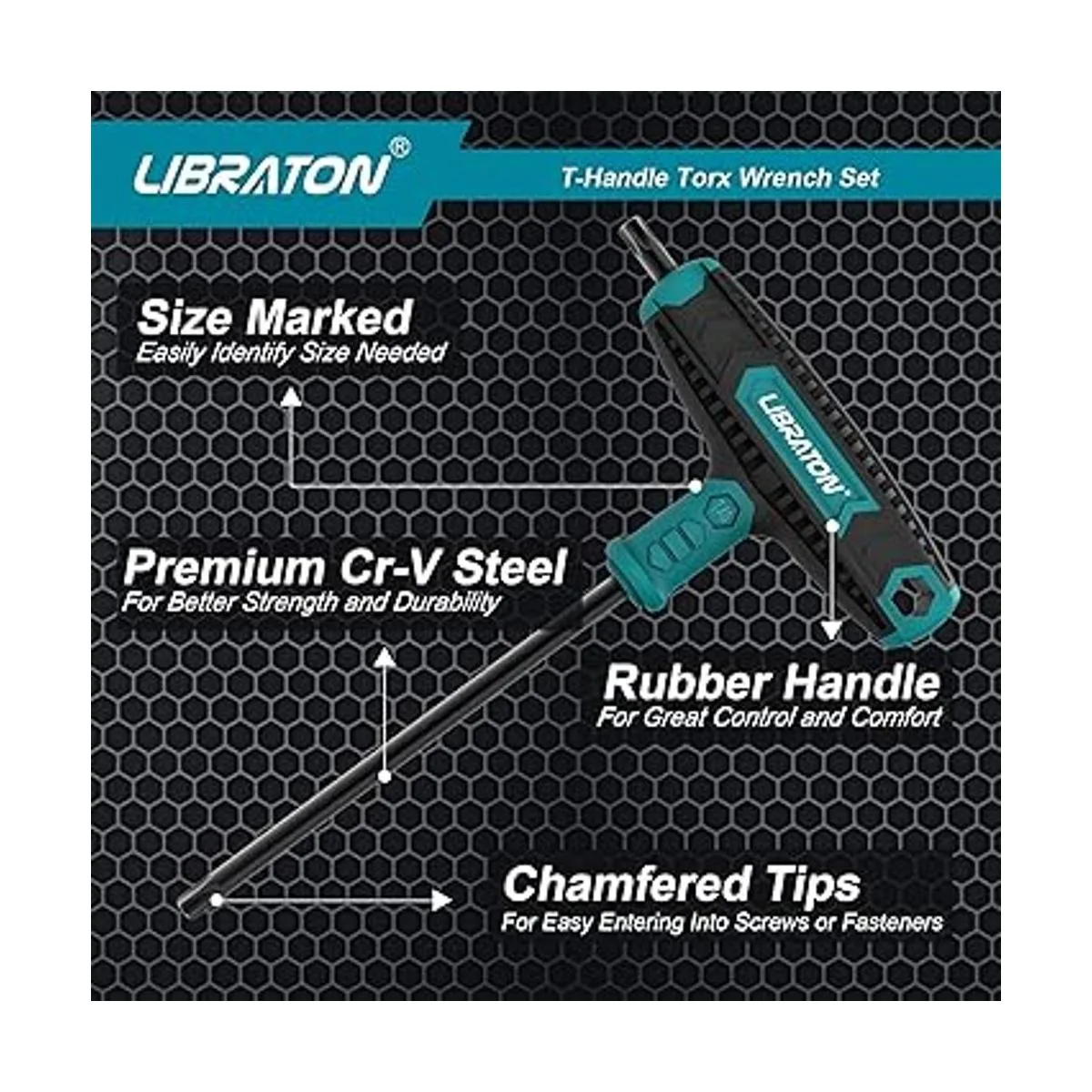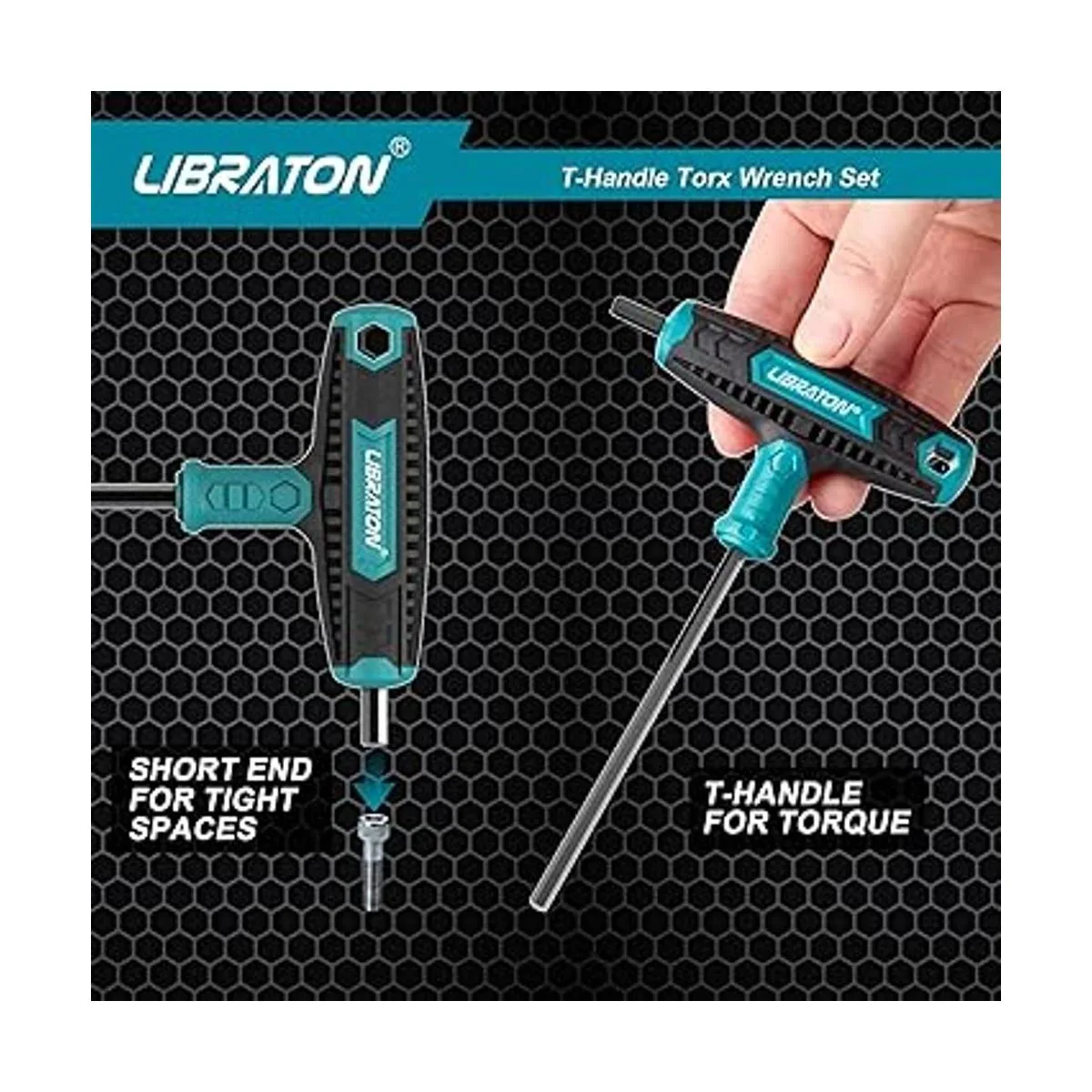 Tamaños populares: el juego de llaves Allen con mango en T Libraton incluye 7 llaves TORX comunes: T10, T15, T20, T25, T27, T30, T40.