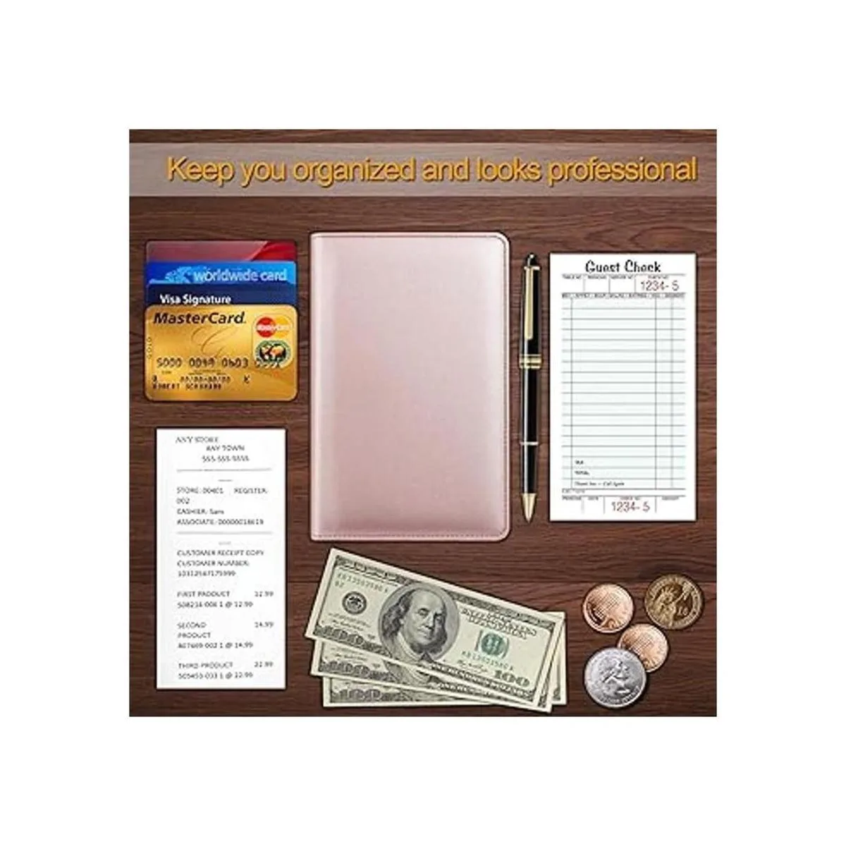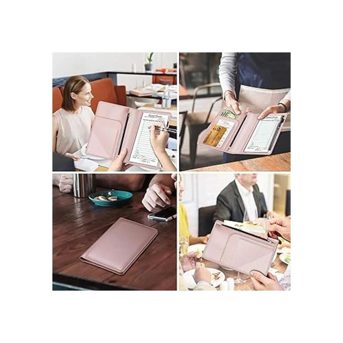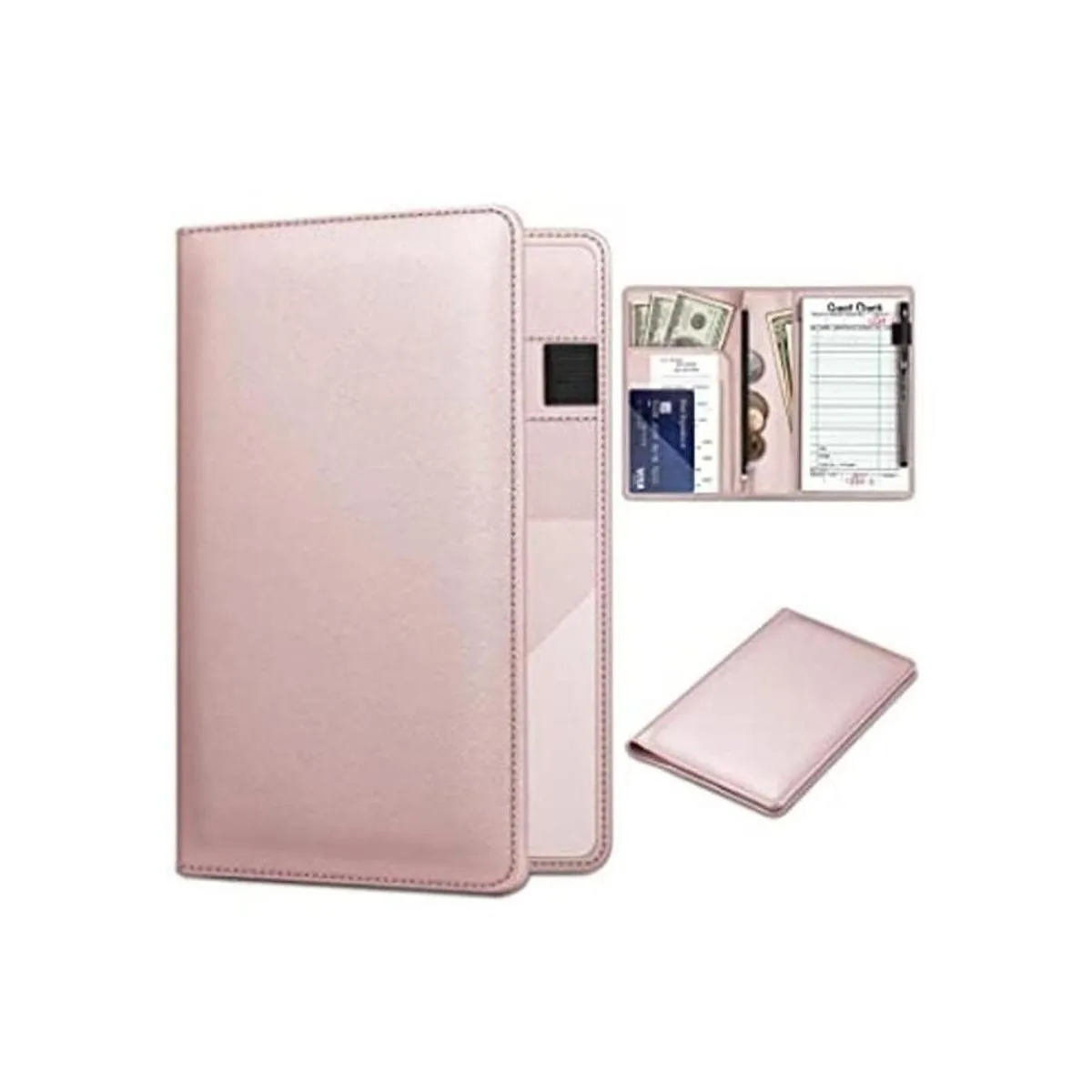 Libreta organizadora para meseros, con bolsillo con cremallera, Fintie de piel sintética para restaurante y visitantes, tarjetero para meseras, meseros oro rosa