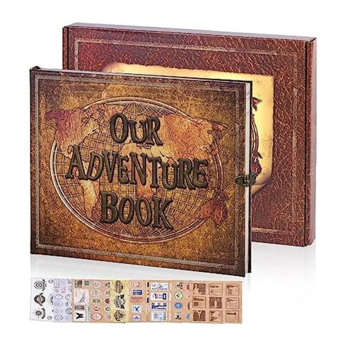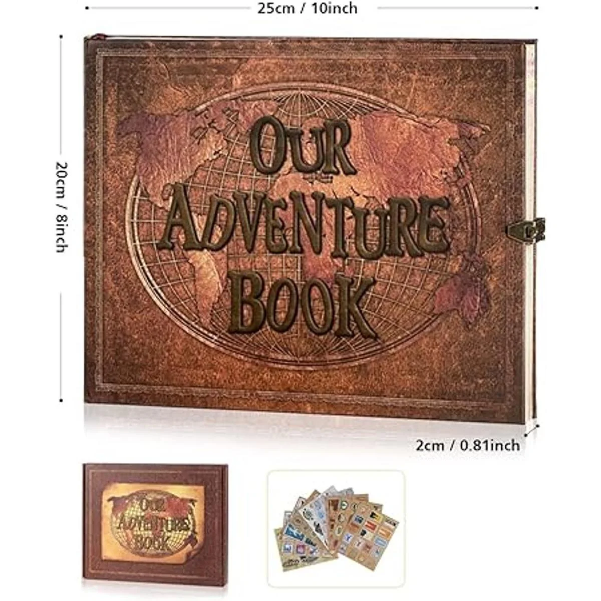 Especificaciones: libro de aventuras de 9.8 pulgadas de largo x 7.8 pulgadas de ancho x 0.9 pulgadas de alto 90 hojas/180 páginas, 1 álbum de fotos exquisito, 1 caja de regalo, varias calcomanías. Es un tamaño perfecto, y se puede poner en una mochila mientras viajas.