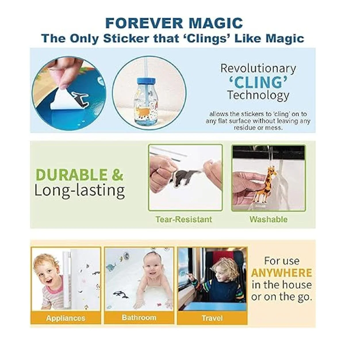 Pegatinas mágicas para siempre: tu calcomanía reutilizable se aglupa o se rompe después de varios usos Nuestras calcomanías mágicas son 5 veces más gruesas que las calcomanías de marca líder, por lo que es fácil para las manos pequeñas despegar y jugar. Son duraderas y duran para siempre. No se rompen fácilmente ni se apelmazan. Incluso es lavable