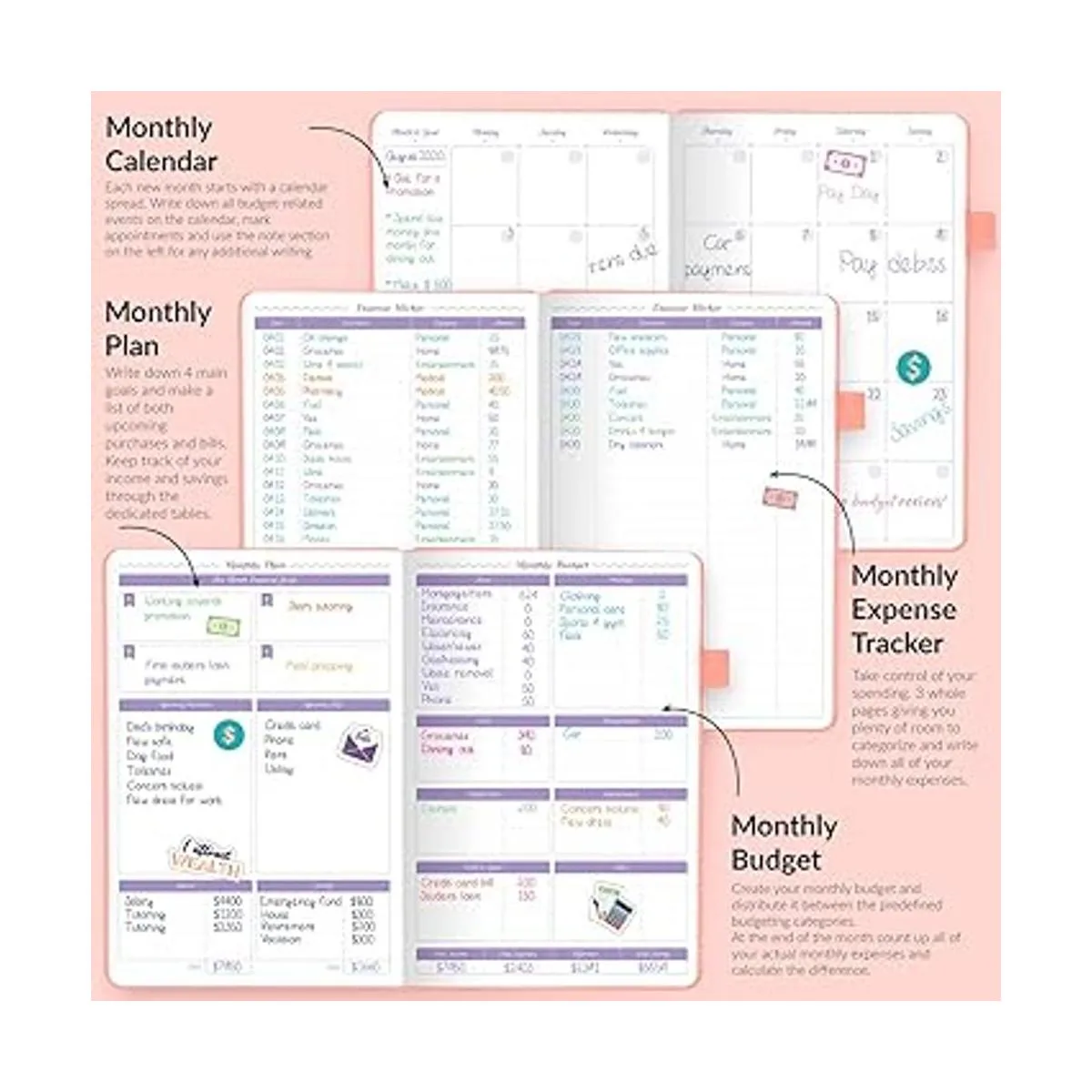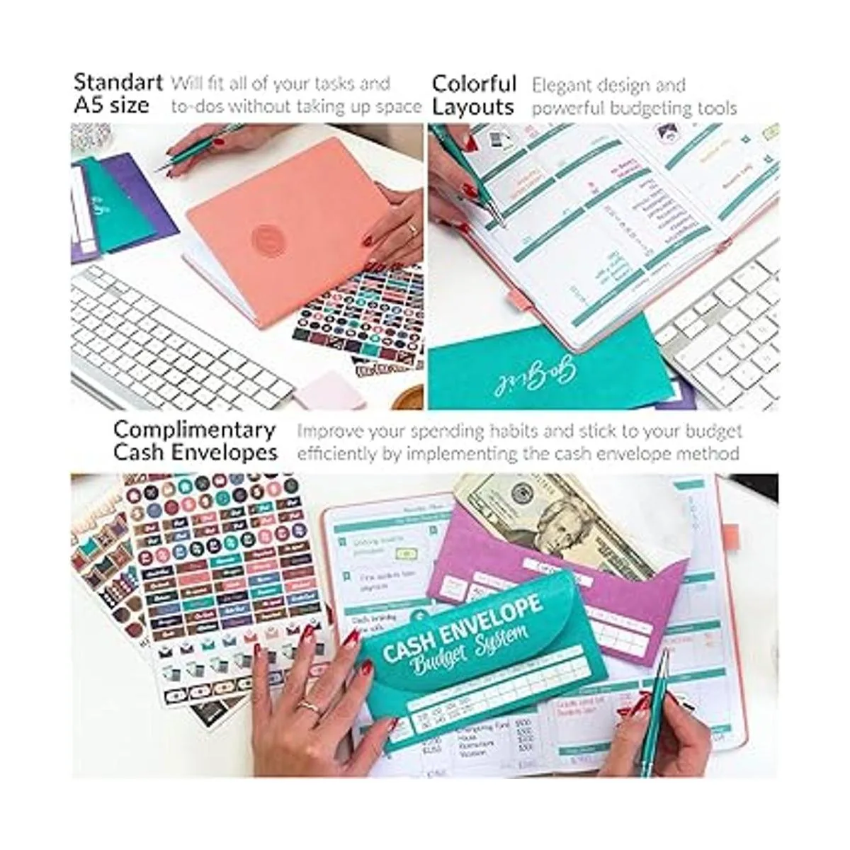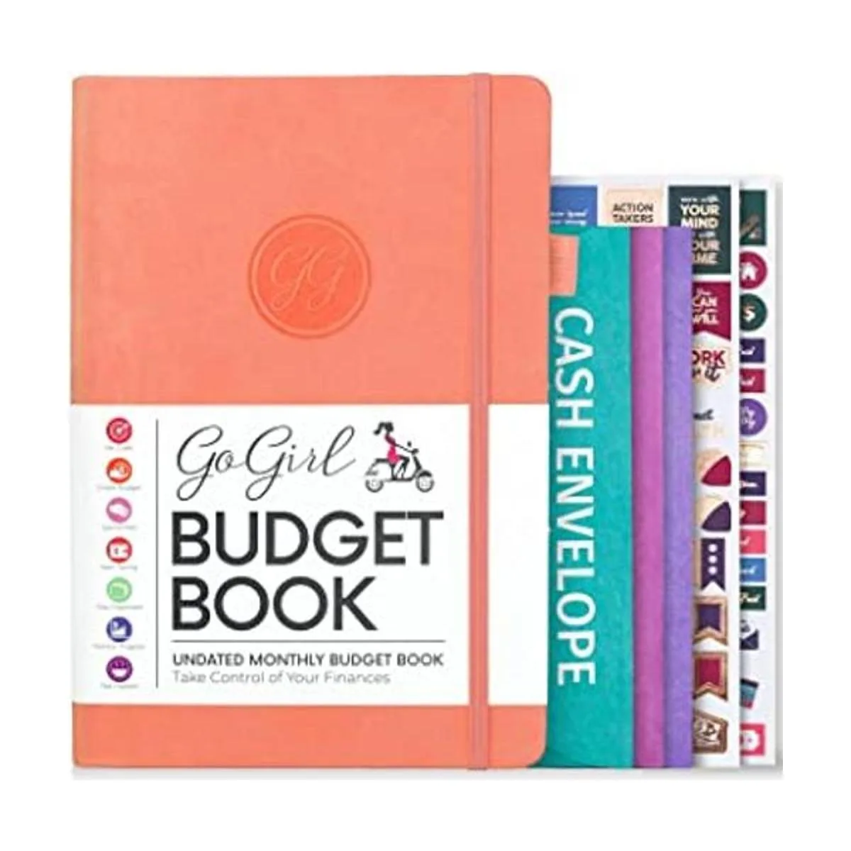 Libro de presupuesto de GoGirl Colorido organizador mensual financiero. Planificador de presupuesto y rastreador de gastos para alcanzar objetivos financieros, dura 1 año, sin fecha, 3 sobres de efectivo, tapa dura A5