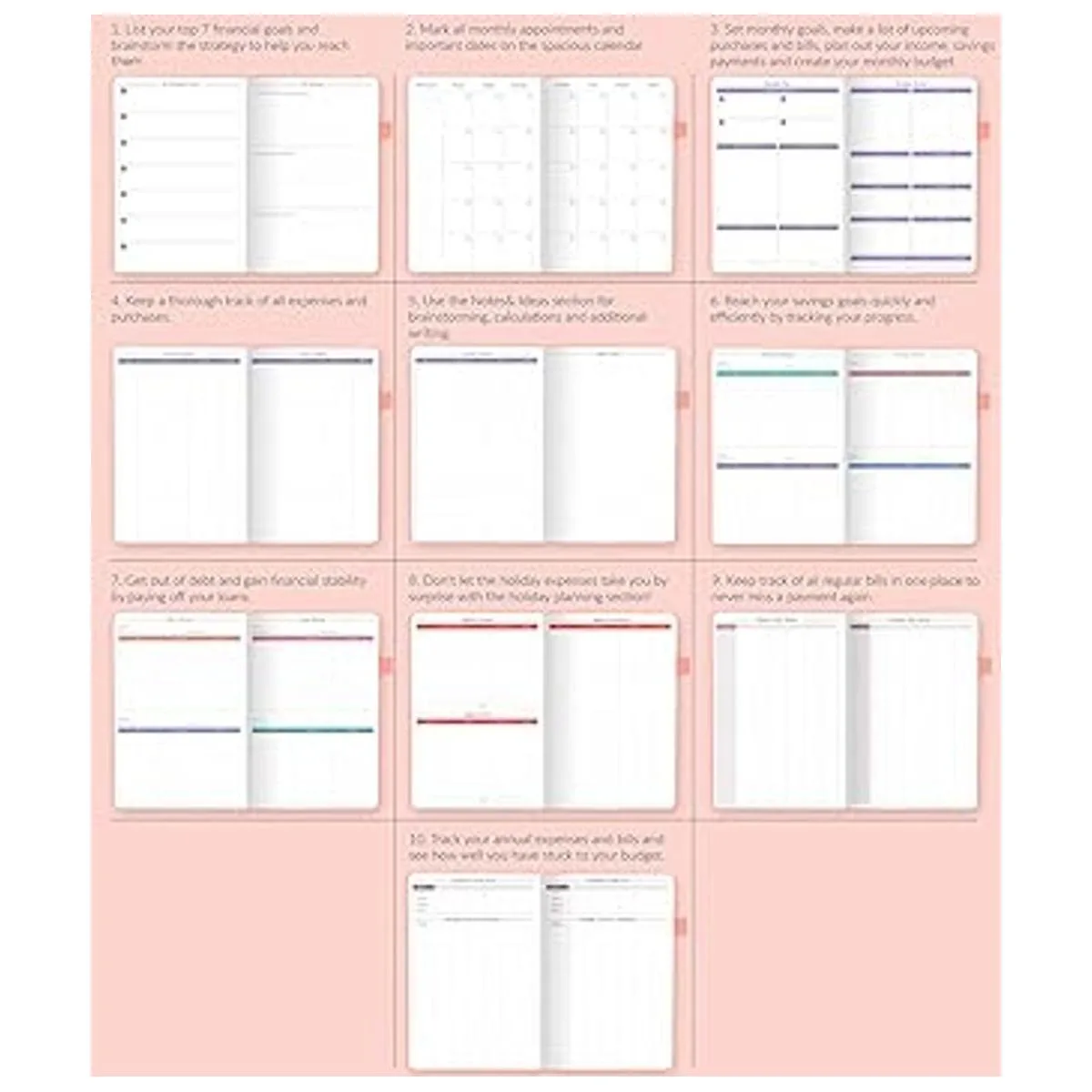 Tamaño compacto conveniente y calidad premium una característica importante de este diario de presupuesto es su tamaño compacto. Este planificador de presupuesto mensual es fácil de llevar contigo para que puedas realizar un seguimiento de tus gastos sobre la marcha. Mide 5.8 x 8.3 in, el tamaño perfecto para un bolso de mujer. Cuaderno para control diario de tu presupuesto de Clever Fo: hecho de cuero sintético y con tapa dura y banda elástica, y lleva un soporte para bolígrafos, un bolsillo de acordeón para facturas y recibos y 1 marcador, y está hecho de papel grueso blanco perla de 3.54 oz/yd.