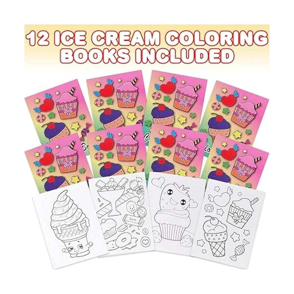 Hazlos sonreír: libros para colorear que hacen que sea muy divertido Este juego incluye 12 libros para colorear, cada uno con 6 páginas llenas de imágenes esperando ser traídos a la vida. Cada paquete contiene libros para colorear en varios diseños de helado para mantener a los niños sonriendo.