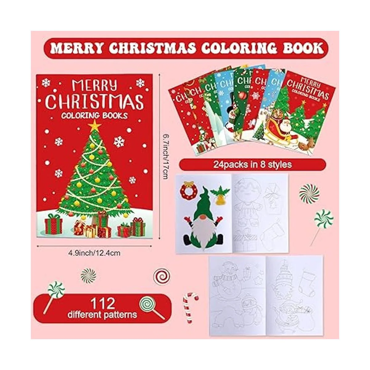 Diseño rico en patrones de contenido: los mini libros para colorear para niños tienen varios patrones de animales de Navidad en estos libros, como elfo, Papá Noel, muñeco de nieve, casa de jengibre, árbol de Navidad, renos, gnomos, bastones de caramelo, renos alegres y más; los patrones interesantes pueden estimular la imaginación de los niños; estos libros para colorear surtidos no son divertidos, también son buenos para ayudar a los más pequeños a expresarse y desarrollar habilidades cognitivas, obtenerlos dulces divertidos que les ayudan aprender