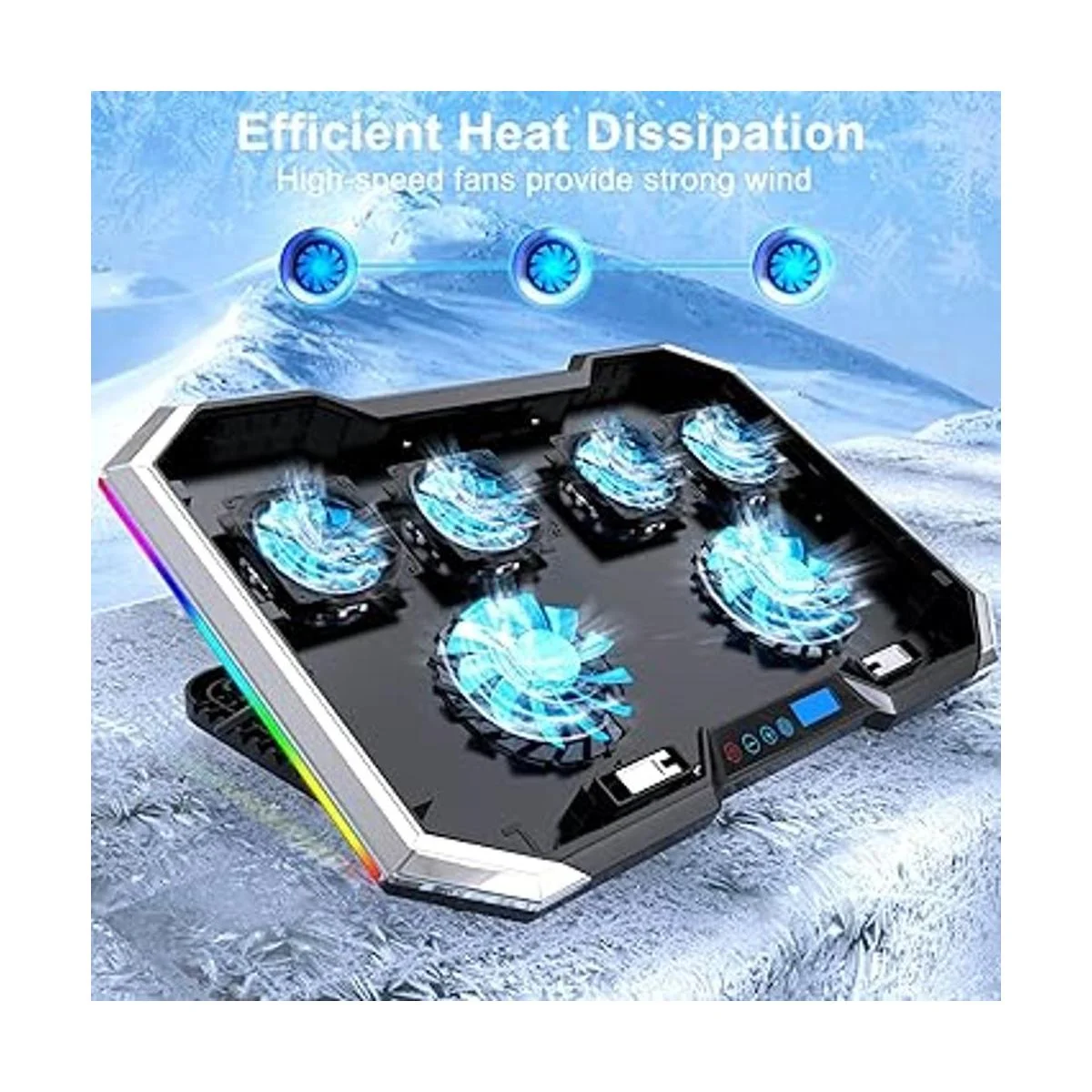 LIENS Almohadilla de refrigeración portátil RGB portátil de dos ventiladores, ultra delgada, silenciosa, almohadilla de refrigeración para portátil para juegos portátil con soporte de luces RGB para 12 17 pulgadas, enfriador de portátil 6 ventiladores